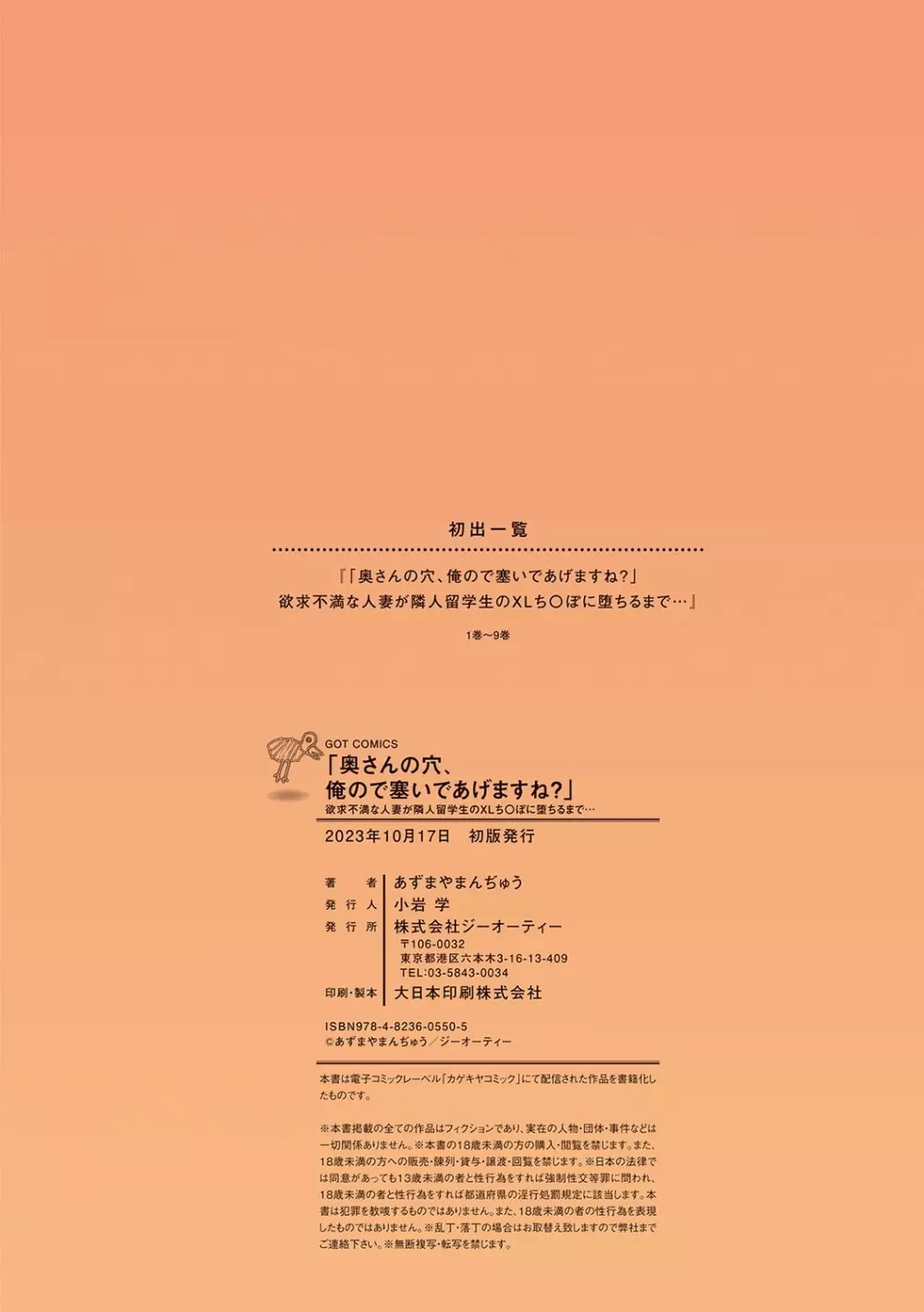 「奥さんの穴、俺ので塞いであげますね?」欲求不満な人妻が隣人留学生のXLち〇ぽに堕ちるまで… 2025年5月22日 226ページ 作者あずまやまんぢゅう内容anal intercoursebig breastscheatingfull colormilfmulti-work seriesnetorarerapesex toystankoubonアナル (2 投票, 平均: 5.00 / 5)読み込み中... お気に入り1 みんなの感想 コメントをキャンセル 自分の名前を保存する