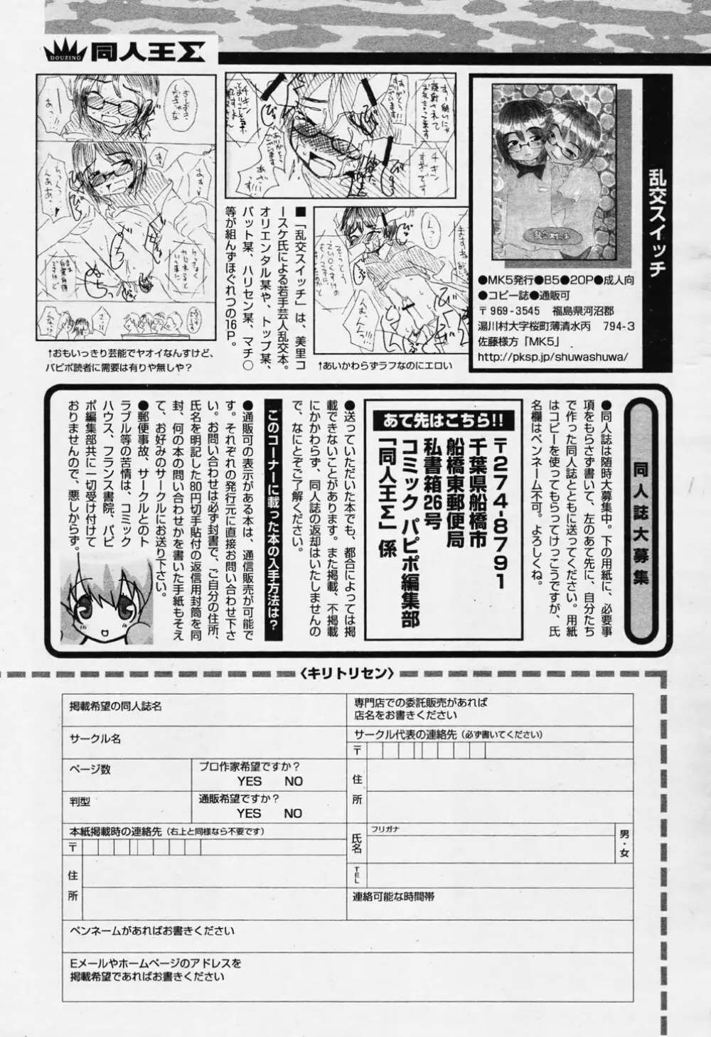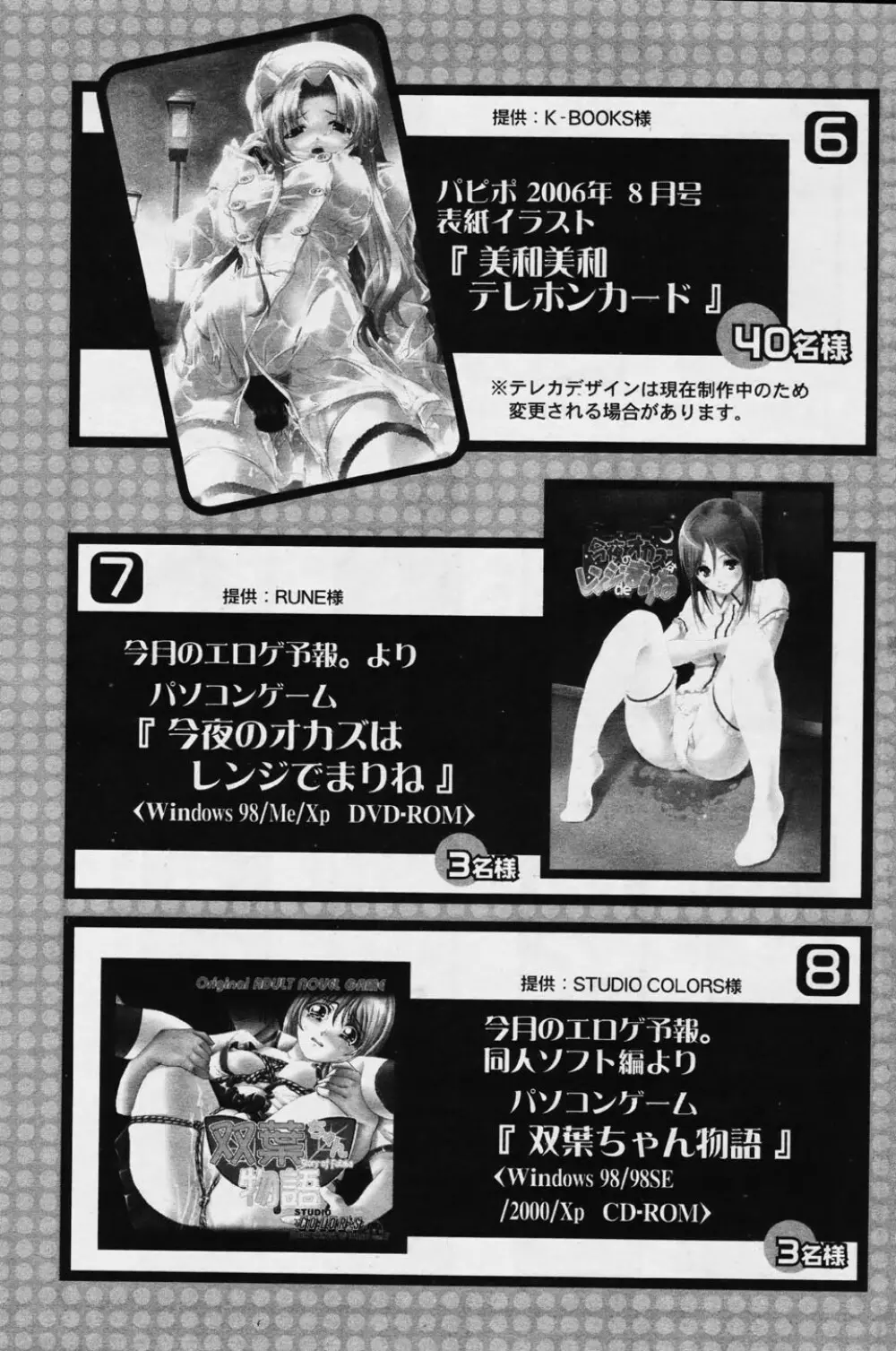 COMIC パピポ 2006年08月号 2025年5月22日 396ページ 作者akagane matsuriD.Pgoto hayakohomingmikoshiro honninohtomo meganeRIKIsumeragi kohakusuwa kunimitsutom tamiotomohara michiya内容anthologybig breastsbondagegagloliconpiercing (まだ評価がありません)読み込み中... お気に入り0 みんなの感想 コメントをキャンセル 自分の名前を保存する