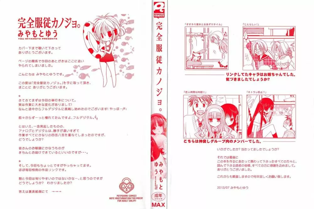 完全服従カノジョ。 2025年5月22日 200ページ (まだ評価がありません)読み込み中... お気に入り0 みんなの感想 コメントをキャンセル 自分の名前を保存する 関連エロ漫画 関連記事が見つかりませんでした。