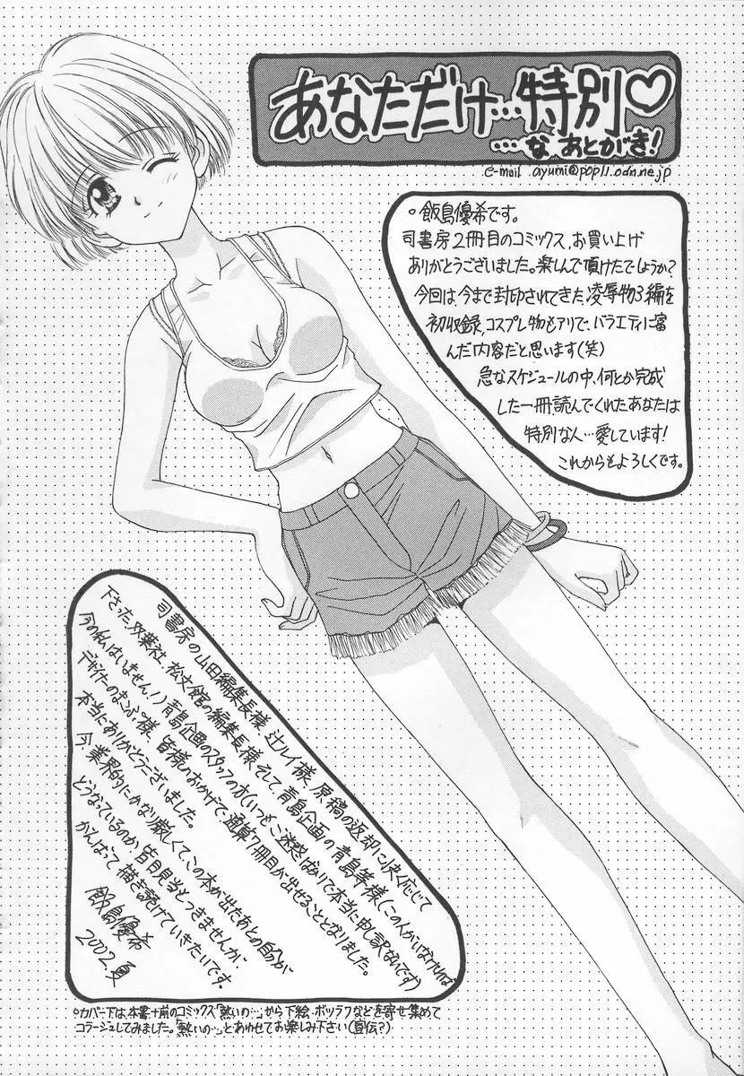 あなただけ・・・特別♥ 2025年5月22日 169ページ 作者飯島優希内容mikotankoubonメイド女子高生の制服 (まだ評価がありません)読み込み中... お気に入り0 みんなの感想 コメントをキャンセル 自分の名前を保存する