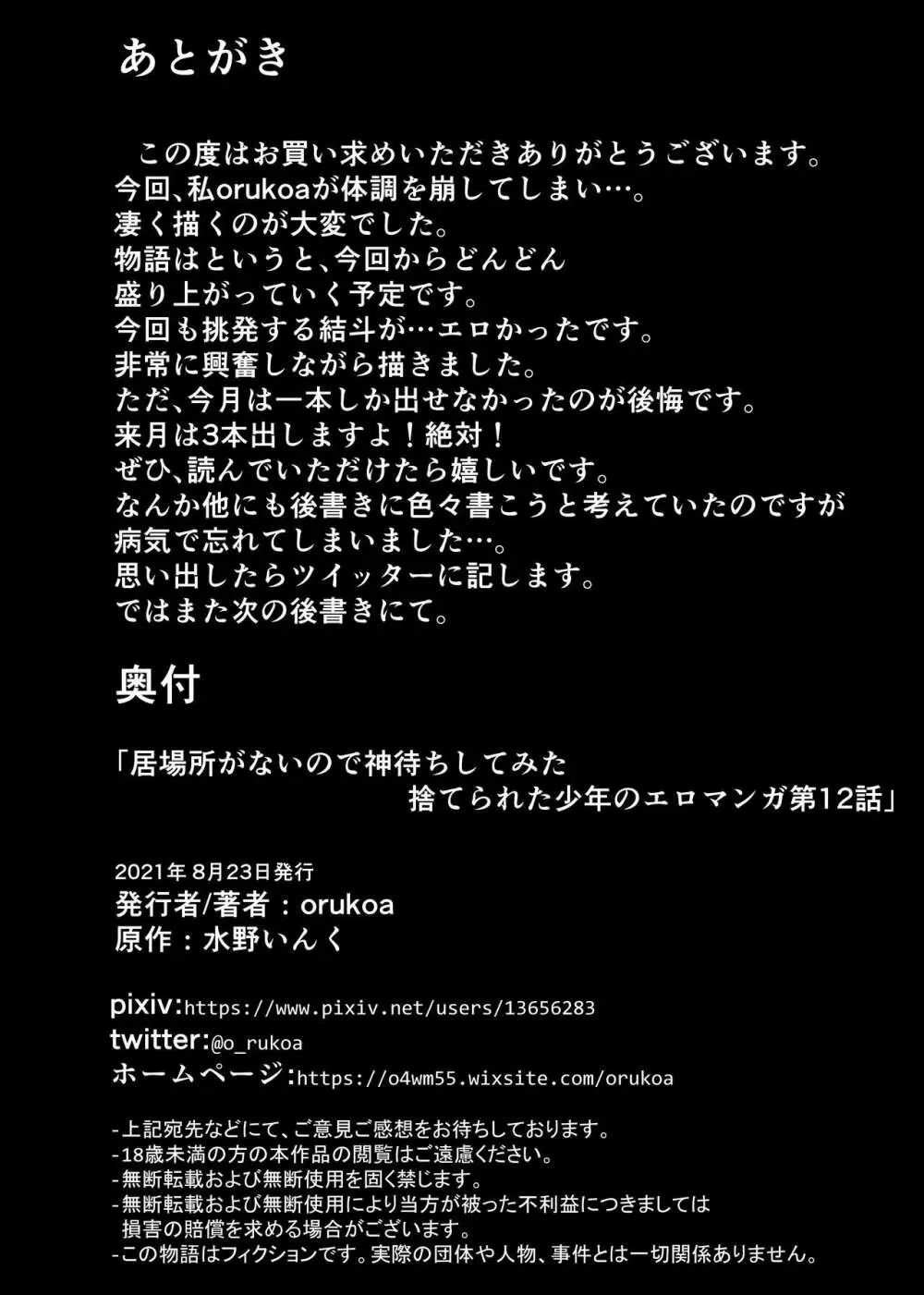 居場所がないので神待ちしてみた捨てられた少年のエロマンガ 第12話 2025年5月26日 32ページ パロディオリジナルサークルショタ漫画屋さん作者orukoa内容BLショタシリーズものフェラチオ (まだ評価がありません)読み込み中... お気に入り0 みんなの感想 コメントをキャンセル 自分の名前を保存する 関連エロ漫画 呪われヒロヒサくん~学校編~ 月刊少年ズーム 2023年10月号 居場所がないので神待ちしてみた捨てられた少年のエロマンガ 【3話】 居場所がないので神待ちしてみた捨てられた少年のエロマンガ 第26話 わたるくんは×××がしたい② 居場所がないので神待ちしてみた捨てられた少年のエロマンガ 第42話 売春少年とエロ親父の漫画 少年とおっさんが半壊した世界で乳繰り合うお話 居場所がないので神待ちしてみた捨てられた少年のエロマンガ 第31話 発散サボタージュ 居場所がないので神待ちしてみた捨てられた少年のエロマンガ 第8話 YUKIMILK 2 居場所がないので神待ちしてみた捨てられた少年のエロマンガ 第37話 2年になっても部活の後は毎日肉便器 居場所がないので神待ちしてみた捨てられた少年のエロマンガ 第15話 田舎の受け少年と都会の攻め少年のエロ漫画【9話】 居場所がないので神待ちしてみた捨てられた少年のエロマンガ 第20話 巨根少年とエゴ先輩のエロ漫画 居場所がないので神待ちしてみた捨てられた少年のエロマンガ 第43話 部活の後は毎日調教 ~中出し汁まみれで強制射精!肉便器係の鬼畜輪姦~