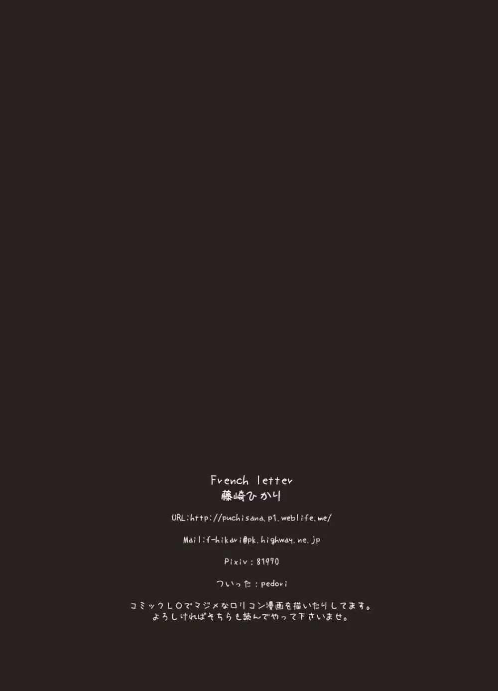 ぺどりあ!! フランちゃんになじられたい!! 2025年5月27日 16ページ パロディ東方ProjectサークルFrench letter作者藤崎藤崎ひかり内容C83sole femalesole maleストッキングフルカラーロリコン女子高生の制服女王様翼キャラフランダース・スカーレット (まだ評価がありません)読み込み中... お気に入り0 みんなの感想 コメントをキャンセル 自分の名前を保存する