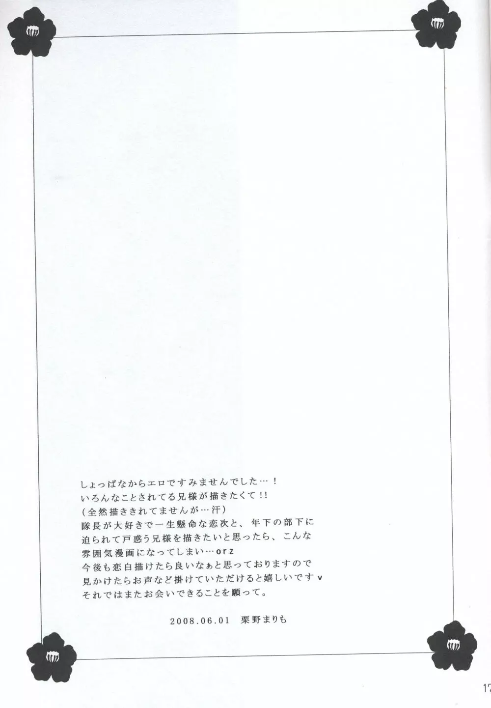 蜜月 2025年5月26日 18ページ パロディブリーチサークルmanimani作者栗野まりも内容BLキャラbyakuya kuchikirenji abarai (まだ評価がありません)読み込み中... お気に入り0 みんなの感想 コメントをキャンセル 自分の名前を保存する 関連エロ漫画 変態男の娘のどきどき女装外出デビュー 闇夜の秘め事 ダメな男。 アイス?愛す? 陽だまりの恋 DISGUISE 俺はノンケだ男とヤるわけがねぇ!!! [八本木ヒルズ (SIS)] 初ウリ男の娘アキ(くん) ~ブルマでお触り種付け初体験~ The Last Supper 夜遊び雌兄貴 グリーン x レッド 夏色に溶ける くの湯 三発め 土方の汗 路地裏のよすが ガトーショコラより甘い君の蜜 メス青年 175 オレだってギルガメッシュ王をアンアン言わせたい!! リバース 幼馴染み解体新書 Jewel of India