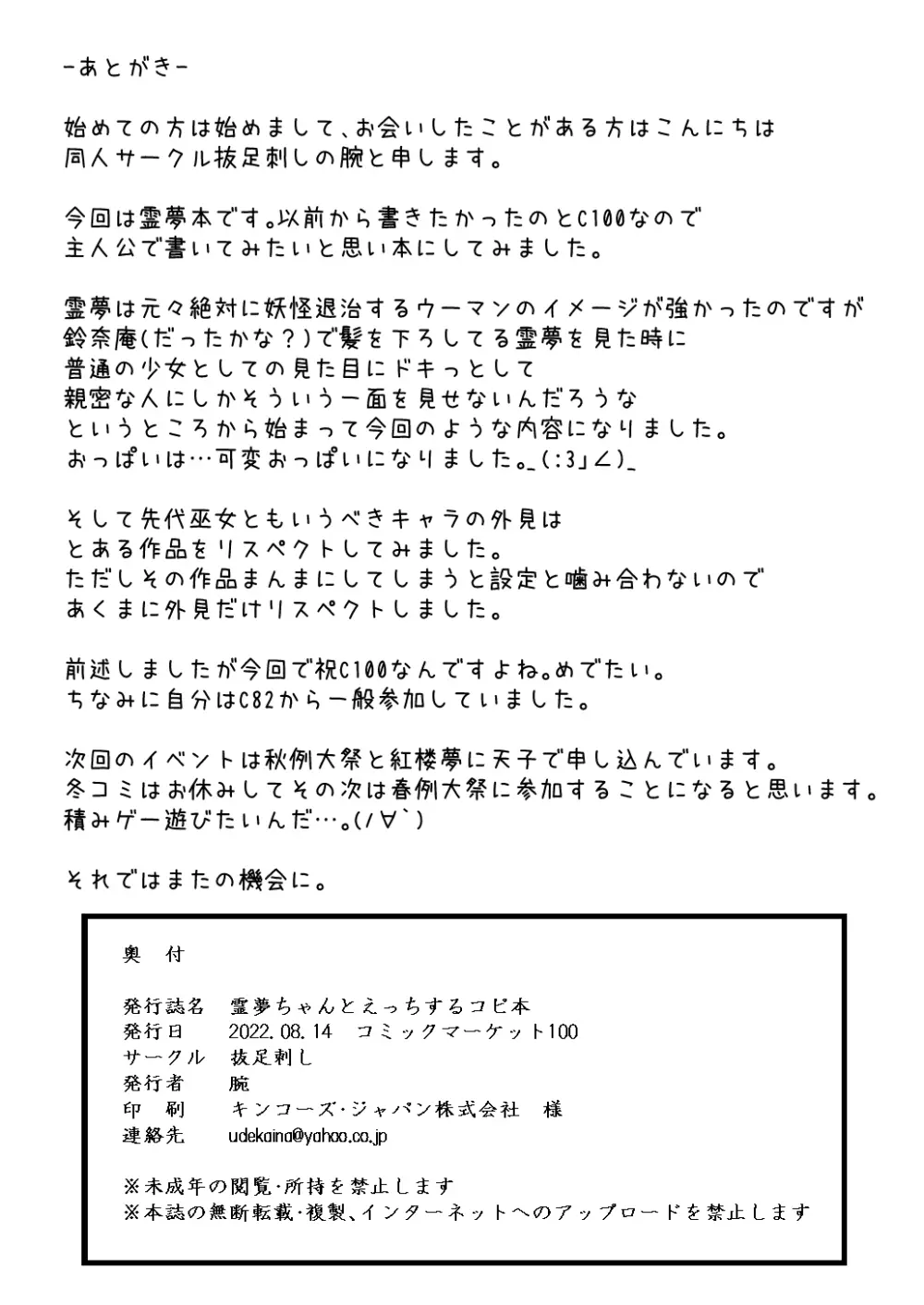 霊夢ちゃんとえっちするコピ本 2025年5月26日 12ページ パロディ東方Projectサークル抜足刺し作者腕内容sole femalesole male中出し含浸透過キャラ博麗霊夢 (まだ評価がありません)読み込み中... お気に入り0 みんなの感想 コメントをキャンセル 自分の名前を保存する 関連エロ漫画 巫女は催眠に弱い 人妻にラブレターを送ってみた 幸せな家庭を築こう 霊夢さんとイチャイチャするだけっ!! 強制妊活永江衣玖 流され巫女たちはチョロくて簡単に孕んじゃう さとり様に甘え放題 援交早苗さんの災難 とうほうのえろ短編~クラウンピースは構ってほしかった~ おち〇ちんの ほごを おこなっております 嬌犬 無知巨乳な元教え子と本能のままハメまくる一夏 ミキ☆ぷる~ん アリス【ALICE】 AWESOME 近所の人妻を寝取って孕ませる話 お空ちゃんと恋人になろう。 田舎から上京したら彼氏ができました! しこしこ霊夢 ゼルダ BOTW – ハイラル王家の復興