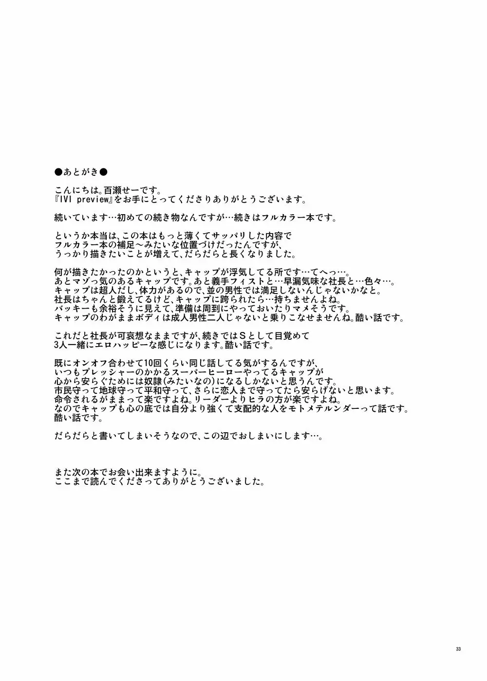 IVI Prequel 2025年5月26日 34ページ サークルMA2作者Momose Sei内容BLmulti-work seriesアナルフィストファック筋肉キャラcaptain americairon man | tony starkwinter soldier (まだ評価がありません)読み込み中... お気に入り0 みんなの感想 コメントをキャンセル 自分の名前を保存する 関連エロ漫画 ぼんでび PREQUEL IVI