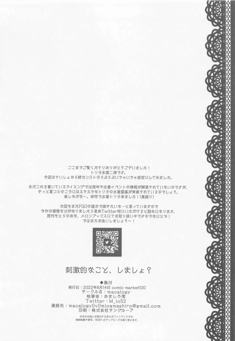刺激的なこと、しましょ? 2025年5月26日 18ページ パロディFate/Grand Orderサークルmacalogy作者あましろ澪キャラbaobhan sith (まだ評価がありません)読み込み中... お気に入り0 みんなの感想 コメントをキャンセル 自分の名前を保存する 関連エロ漫画 水着ロリンチちゃん カイニス、男湯に入る 今月のエロ漫画①(202111) バニーなトリ子といちゃらぶえっち JAPANESE Lolita. 瞼を閉じよ! 猫耳邪ンヌとひたすら交尾する本 概念礼装は金色の夢を見る 私は大人なので OrangeMaru Special 06 ジャンヌ・ダルクと風俗でしたいっ! FGOパイズリ合同2~英霊乳挟領域ズリデア・ル・フェ~ 溶解液対策 (敗北) マスターとすっっっっごい仲の良いバーヴァンシーさん ヒロインエックスとヒロインせっくす!! バーヴァン・シーといろいろえっち本 Carnal Chaldea 5 うさぎをいし いいこと、しましょ♥ 魔王様はマスターさんを堕落させたい!