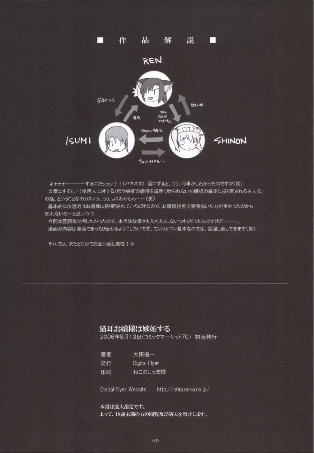 猫耳お嬢様は嫉妬する 2025年5月26日 22ページ サークルDigital Flyer作者大田優一内容猫娘 (まだ評価がありません)読み込み中... お気に入り0 みんなの感想 コメントをキャンセル 自分の名前を保存する 関連エロ漫画 関連記事が見つかりませんでした。