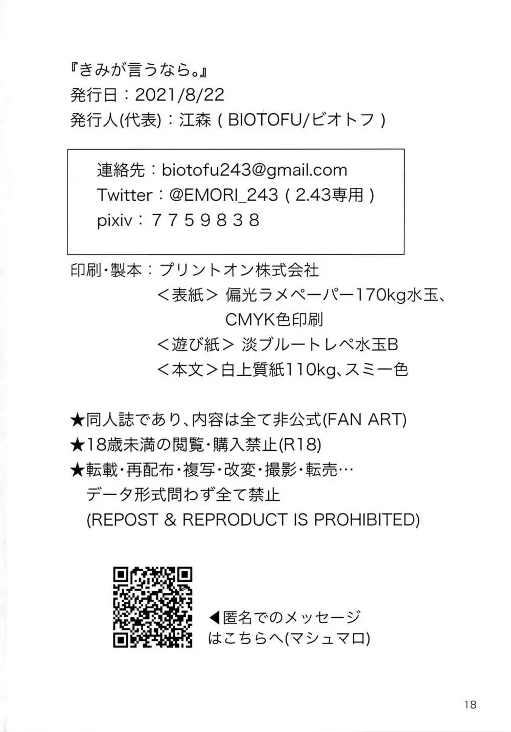 きみが言うなら。 2025年5月26日 18ページ パロディ2.43 清陰高校男子バレー部サークルBIOTOFU作者江森内容BLkissingフェラチオ挿入無し男子生徒の制服超超SUPER COMIC CITY 2021キャラmisao aokishinichirou oda (まだ評価がありません)読み込み中... お気に入り0 みんなの感想 コメントをキャンセル 自分の名前を保存する 関連エロ漫画 少年は電気ヒツジンの夢を見るかvol.1 まわしぐいクリームパフ リクとフウ 赤ちゃんできれば家族になれるのかな 蒲倉くんとイッキくん 神さん屋 #3 – #6 幼稚園児ショタと撮影会 ねえ、先生 酔っ払い倉沢 櫂アイ総集編 箱庭の隣人 マジかかっちゃん!? 今の気持ち誰に伝えたいですか 花鶴月露 きっと気持ちぃよ とけてまざってアメジスト そのいち! 勤務時間内はおやめください 可愛がってください エルヴィン・スミスをもうひとりささげよ!! 比企谷八幡を催眠術で彼女にしてヤりたい放題する本。 Sサイズ短編集