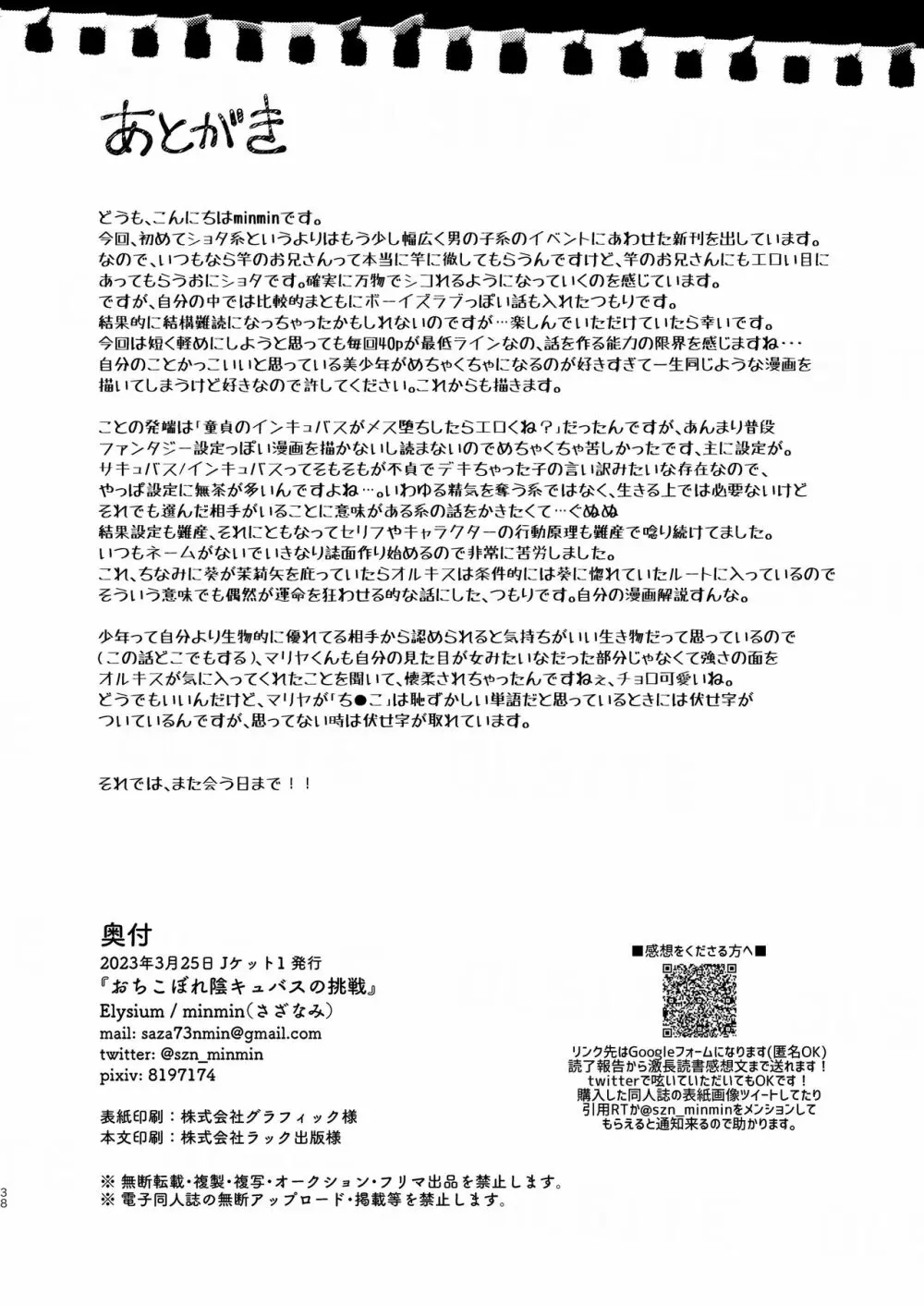 おちこぼれ陰キュバスの挑戦 2025年5月26日 40ページ パロディオリジナルサークルElysium作者漣内容BLアナルツノフェラチオ悪魔っぽい翼 (まだ評価がありません)読み込み中... お気に入り0 みんなの感想 コメントをキャンセル 自分の名前を保存する 関連エロ漫画 俺とお前がXして 下 聖剣浸淫 ~淫紋調教で堕落するエリート騎士~ 第1話 サキュバス魔王ペット堕ち ブラックリリィの呪い蜜 あくまでおしおき中 発情にゃんこはアニキに夢中 ASSORT ポンコツ淫紋淫魔に性的制裁したら気に入られた サキュバスくんとのせいかつ3 サキュバスくんとのせいかつ4 25×2TIME! パラスティク・ブルー ヘタレないでよ!淫魔くん 腹ペコ催眠 初めての彼女は男の娘。 酣夢 腹ペコ催眠 インキュバスと発情狼男とモンスターメンバー Tim & Stella 2 催眠アプリで兄を犯す弟の話