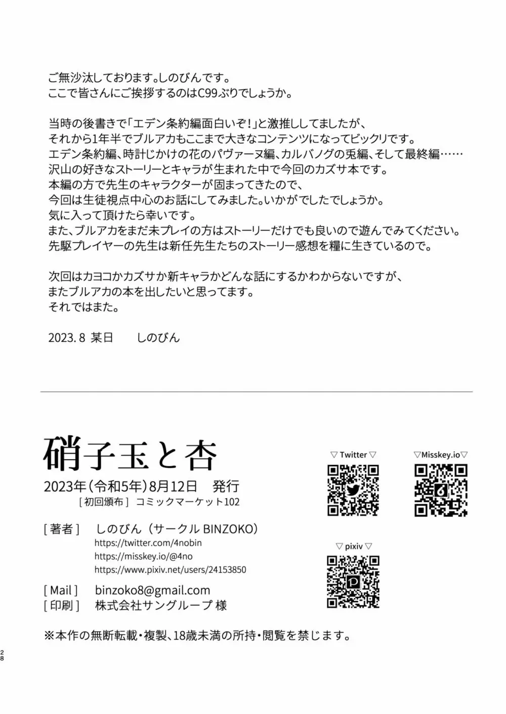 硝子玉と杏 2025年5月26日 28ページ パロディブルーアーカイブサークルBINZOKO作者しのびん内容sole femalesole maleパンスト猫娘獣耳首輪・鎖・拘束具キャラ先生杏山カズサ (まだ評価がありません)読み込み中... お気に入り0 みんなの感想 コメントをキャンセル 自分の名前を保存する 関連エロ漫画 先生が望むなら Sweet Dreamer ブルアカ乳業2 金曜日のネコ カズサと放課後水着えっち♡ 優秀だけど湿度の高い作戦参謀 ごめんね先生 キキョウの尻穴 とことんやっちゃう杏山カズサ2 ルミ カズサと放課後水着えっち♡ 今日から先生の性処理係してあげる♥ アスナ催眠NTR セイアゼミ、延命 透き通ったアキラ 尾を振る兎は叩かれる マリンブルーに染められて Reward Me せんせぇ イブキとわんわんごっこしよ? 杏山カズサの甘い秘密