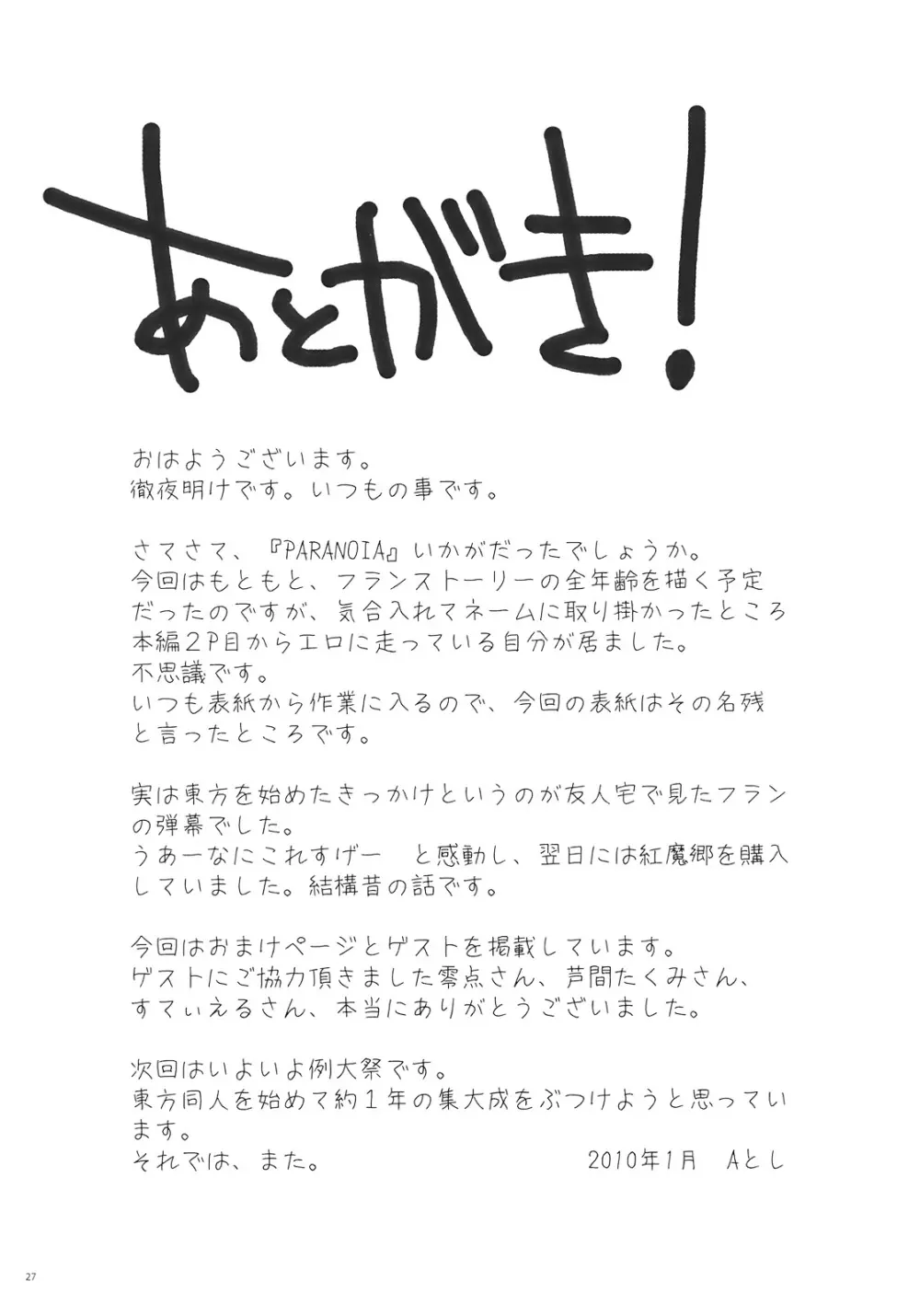 PARANOIA 2025年5月26日 36ページ パロディ東方ProjectサークルKOTI作者Aとし内容females onlystrap-onyuri紅のひろば3キャラflandre scarletremilia scarlet (まだ評価がありません)読み込み中... お気に入り0 みんなの感想 コメントをキャンセル 自分の名前を保存する 関連エロ漫画 vs実験体 Runaway Paranoia ねこあそび 忌避断罪+PARANOIA+虎の威を借りて恋 セット (C79) [PARANOIA CAT (藤原俊一)] 憧れの女 -秘密の一週間- #6 Seiteki Paranoia FAIRY PARANOIA レミリアはXXXを知りたいのです VacVac cinecine Miracle8 Paranoia Monsters イケナイ主従関係 誰も私を見ていない 朔日閑話 悪魔の犬のしつけかた。 [PARANOIA CAT (藤原俊一)] 憧れの女 -黒川朋枝編- #4 [DL版] ジェントルリズム2 (C82) [PARANOIA CAT (藤原俊一)] 憧れの女 -黒川朋枝編- #0 おまん紅魔館 東方双恋華