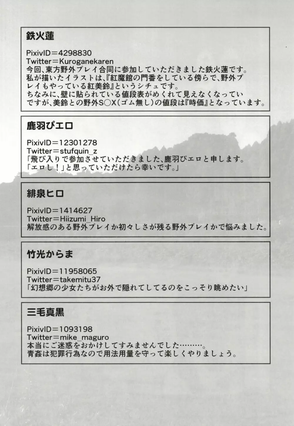 幻想郷野外プレイ合同 東方青姦録 2025年5月26日 30ページ パロディ東方Projectサークル臨時PT作者よろず内容合同誌 (まだ評価がありません)読み込み中... お気に入り0 みんなの感想 コメントをキャンセル 自分の名前を保存する 関連エロ漫画 ぬるぬるDEぱこぱこ パチェックス ぱちゅりーのえっちなえほん CJD幻想郷 霧雨魔法店裏コース合同 霧雨魔理沙の裏稼業 早苗さんのお祓い大作戦 賢者のための前奏曲 女子高生霊夢痴漢電車被害 東方裏表としあき合同誌 としあき紺謝祭 Ura 紅魔館艶行 東方ラッコ鍋合同 しょたちん幻想郷 YOUMU! 嫐九尾の搾精報告 道化シてるぜ! ブーツで蒸れて何が悪い! うちの天人様 Later Love Letter 散花 姐さん勇儀っぱい 狩りの尾時間・EX