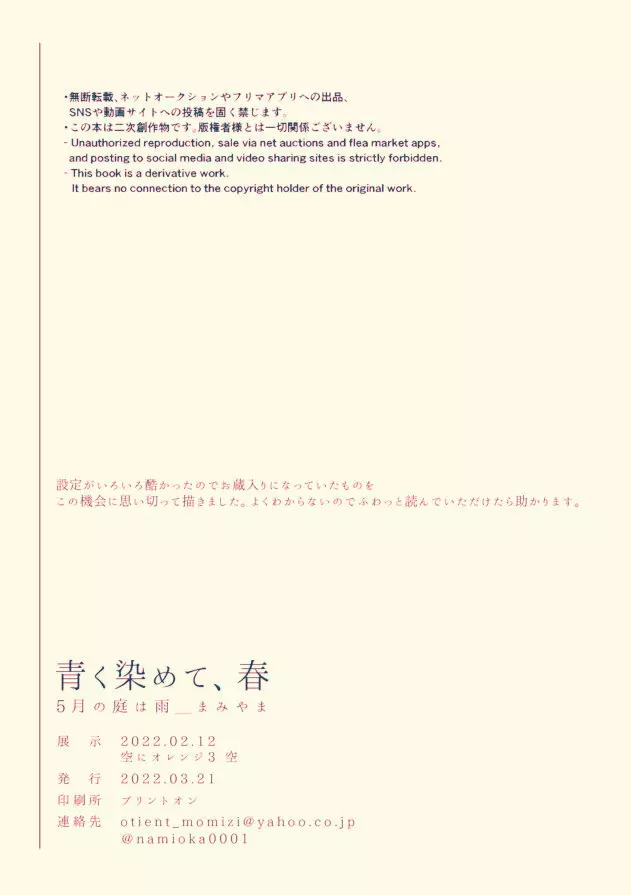 青く染めて、春 2025年5月26日 17ページ パロディ呪術廻戦サークル5月の庭は雨作者まみやま内容BLgogatsu no niwa ha ameアナル妖言21男性専用キャラ五条 悟虎杖 悠仁 (まだ評価がありません)読み込み中... お気に入り0 みんなの感想 コメントをキャンセル 自分の名前を保存する 関連エロ漫画 Fiction/Non-Fiction 不可侵領域 あきらかバグった! 13H 両手に虎 ワカラセ♥ やっぱり敵わない さよなら、イエスタデイ 胸の内精一杯 アオイハルのはしりかた すばらしい日々 俺の恋人は初心者アルファ 本能の海 PRIVATE 五条先輩♡俺とオメガバごっこしよ♡ HAPPY WEDDING だってだいすきなんだもん 美味しく食べてね、桃源郷 楽園の庭 渇愛 2