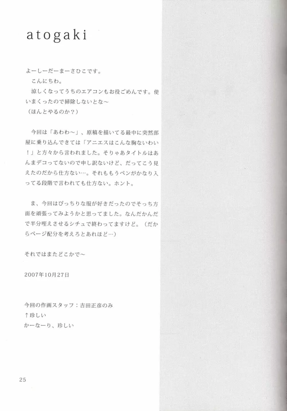 オデコロンナイト 2025年5月26日 27ページ パロディゼロの使い魔サークルサウンドステッカー作者吉田正彦キャラagnes chevalier de milanhenrietta de tristain (まだ評価がありません)読み込み中... お気に入り0 みんなの感想 コメントをキャンセル 自分の名前を保存する 関連エロ漫画 THREAT WZARD しょくぅぅ! Parabellum 準備号 高貴なる淫靡女王 PINK GIRLS ERO魔。 姫様ランデブー 脱いだらすごいんです。 貴族極楽 -使い魔ライフ!!- 万有犬力の法則 るいZoo Le beau maître Omnibus LP ゼロ魔おまとめ 女王の嗜み ゼロの使淫魔 ぴちゃぷり。 ミニマルトリップ・ゼロ アンリエッタと相互オナニーをする本!! ゼロの娼婦 零姫