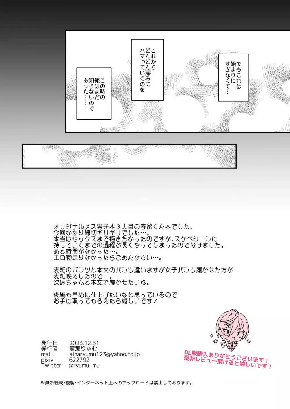 かわいいに弱い陰キャ男子がメス堕ちするまで 前編 2025年5月26日 27ページ パロディオリジナルサークルマイコロジィ。作者藍那藍那りゅむ内容frottagemales onlymulti-work seriesno penetrationschoolboy uniformtomgirlyaoiキス女子高生の制服女装 (まだ評価がありません)読み込み中... お気に入り0 みんなの感想 コメントをキャンセル 自分の名前を保存する
