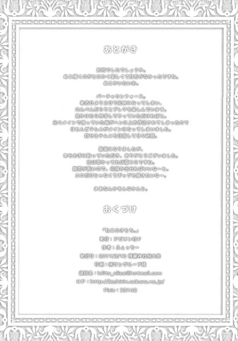 ねこのきもち。 2025年5月25日 26ページ パロディ東方Projectサークルアビオン村F作者ふぇっちー内容catgirl例大祭8キャラrin kaenbyou (まだ評価がありません)読み込み中... お気に入り0 みんなの感想 コメントをキャンセル 自分の名前を保存する 関連エロ漫画 O-RiNG WOW! Dear Rin-Chang! 素直になれないお燐ちゃんとラブラブしちゃう本 地霊殿の痴情 東方発情獣症~壱・地獄猫編~ ねこのきもち 甘々露々 簡素まんが おくうりんのむっちりいちゃえっち HEAVEN and HELL シシテシカバネ 高級ソープ「地霊殿」~お燐ちゃん編~ 女子高生お燐3 幻想郷乳図鑑・地 Contagion KKMK vol.5 東方源泉郷 東方異種姦合同 キャッツ・ワークス! 火焔猫燐集団愛撫 鮪
