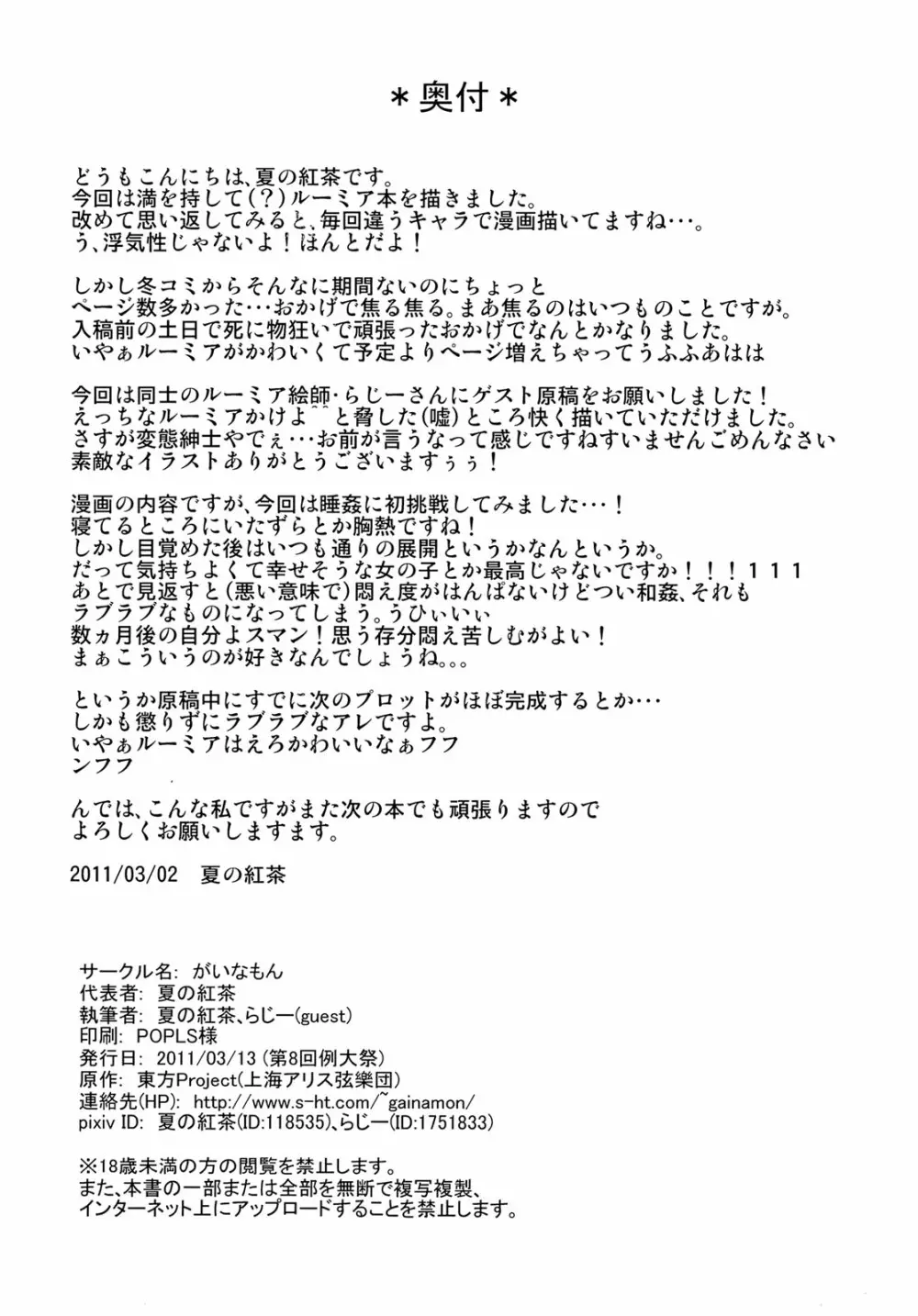 日常性活 2025年5月25日 39ページ パロディ東方Projectサークルがいなもん作者夏の紅茶内容フェラチオロリコン例大祭8睡眠姦キャラルーミア (まだ評価がありません)読み込み中... お気に入り0 みんなの感想 コメントをキャンセル 自分の名前を保存する 関連エロ漫画 上司の寝る間に… 日常性活 -弐- 無題 起きないの!?るーみあちゃん! 東方アンケ4週目 やさしいるーみあ やみいち ブラックホールやさん メスガキ フランちゃん 睡姦アナル調教 地底世界でヤマメちゃんと握手!! 煩悩の狼追えども去らず 囚ワレ妖精 すずなーんのえろほん フランドール睡姦凌辱 日常性活 -零- あーん 搾精カルテット 俺の股間は十字架に磔られました 肉欲神仰信 – Episode of religious faith – 愛しのブラインドネス プラス!