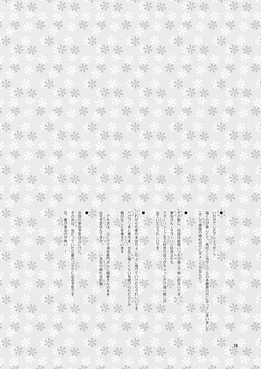 わたしのナズーリン 2025年5月23日 30ページ パロディ東方Projectサークルオロリヤ鉛筆堂作者博恵夏樹無有利安内容ネズミ娘ふたなりロリキャラnazrinshou toramaru (まだ評価がありません)読み込み中... お気に入り0 みんなの感想 コメントをキャンセル 自分の名前を保存する 関連エロ漫画 ねずみ50% Obsession 命蓮寺修行七日間 ねずみいじり+ わたしのナズーリン2 夏コミの本おとしたのでそのまま晒します おとなりはナズーリン Re:おとなりはナズーリン 寅が子に勝てるわけがない!! 絶対に負けないっ! ルナティックウドーン 小さな小さなつよがり 虎穴に入らずんばナズも犯る ネズミチューイホウ!! オナズーリンとセンズリータイガー おいでませ!!自由風俗幻想郷2泊3日の旅 弥生 東方睡眠姦合同誌 ナズーリンががんばる本 NHK コミック トウホウミルク 20011年3月号