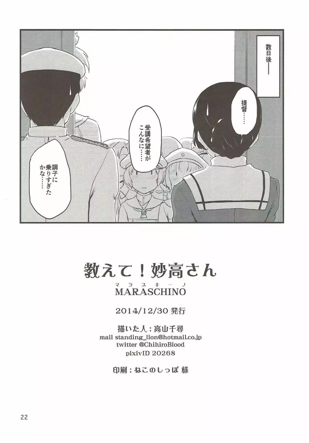教えて!妙高さん 2025年5月27日 22ページ パロディ艦隊艦隊これくしょん -艦これサークルMARASCHINO作者高山千尋内容C87militarysole malevoyeurismアナル束縛キャラmyoukou提督 (まだ評価がありません)読み込み中... お気に入り0 みんなの感想 コメントをキャンセル 自分の名前を保存する