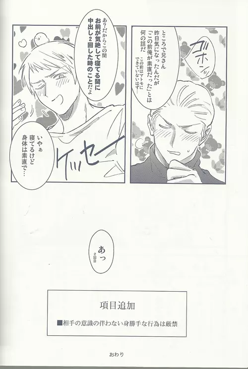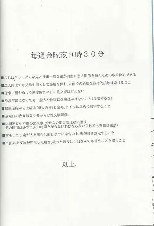 Maishuu Kinyou Yoru 2025年5月23日 37ページ パロディヘタリア内容yaoiアナルキャラgermanyprussia (まだ評価がありません)読み込み中... お気に入り0 みんなの感想 コメントをキャンセル 自分の名前を保存する 関連エロ漫画 メタボと爺さんが眉毛を侵略する本 ein Drittel Doddy Bunny Axis Powers CANIDAE!!! 黙ると死ぬ男 mangetu no yoru ni hana . うさメリたんはまだ発情期です. 内容はふつうじゃないから… Yoru wa korekara 【WEB再録】ギルロデ本【2019】 超大艦巨砲主義 !!VENDIMIA!! マギア・セクスアリス/中 Tsuitachi no yoru Jitsuen Yoru no Viburato STAMP vol.6 Jigoku Ezu no Yoru Heaven’s Fruit yoru jū ni-ji no heya[fate grand order ) fuse me!