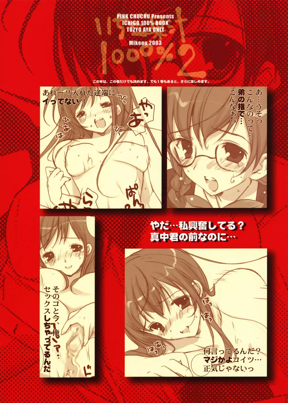 いちご果汁1000% 2 2025年5月23日 42ページ パロディいちご100%サークルPINK CHUCHU作者みけおう内容C64女子高生の制服男子生徒の制服眼鏡キャラ東城 綾 (まだ評価がありません)読み込み中... お気に入り0 みんなの感想 コメントをキャンセル 自分の名前を保存する 関連エロ漫画 いちご果汁1000%