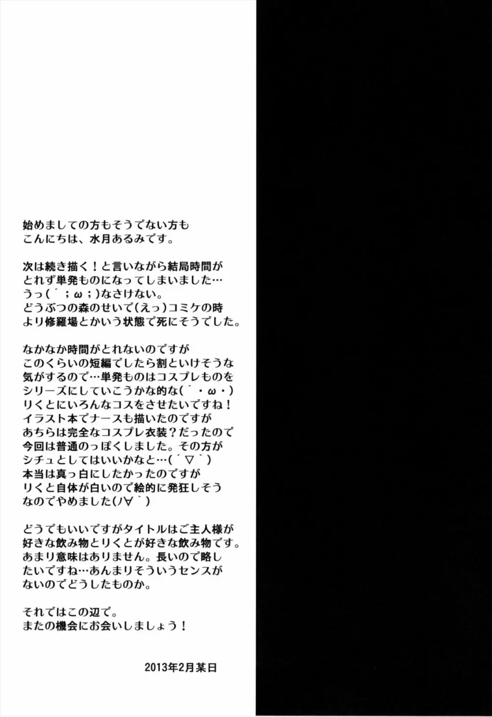 ビターなコーヒーとシュガーなミルク「ラブリー・メディスン」 2025年5月23日 16ページ サークルALMISM作者水月あるみ内容ナース猫耳 (まだ評価がありません)読み込み中... お気に入り0 みんなの感想 コメントをキャンセル 自分の名前を保存する 関連エロ漫画 エキスパートになろうよ! 1.5 電波@モード ふたりだけのCoda ネコマタおねえちゃんは発情期! 前編 電脳サキュバスとセックスしても永久に出られない部屋THE END 命令電波 人工透析 BUSTER CHAIN カルデア真夏の挟射祭 コミックボンボボン 2000年08月号 たまも♥サービス みみこれっ‼ めるしのにっ! 真髄 VOL.8 とらみみ本 超弩級お子様科学戦隊 LOVE LOVE らぶりー じゃれつくのはかまわないよ 九龍城11 さくらちゃんで遊ぼう6 REBORN DEVOTION. ビターなコーヒーとシュガーなミルク 「夜明けのレモンティー」 ]Bell the cat!