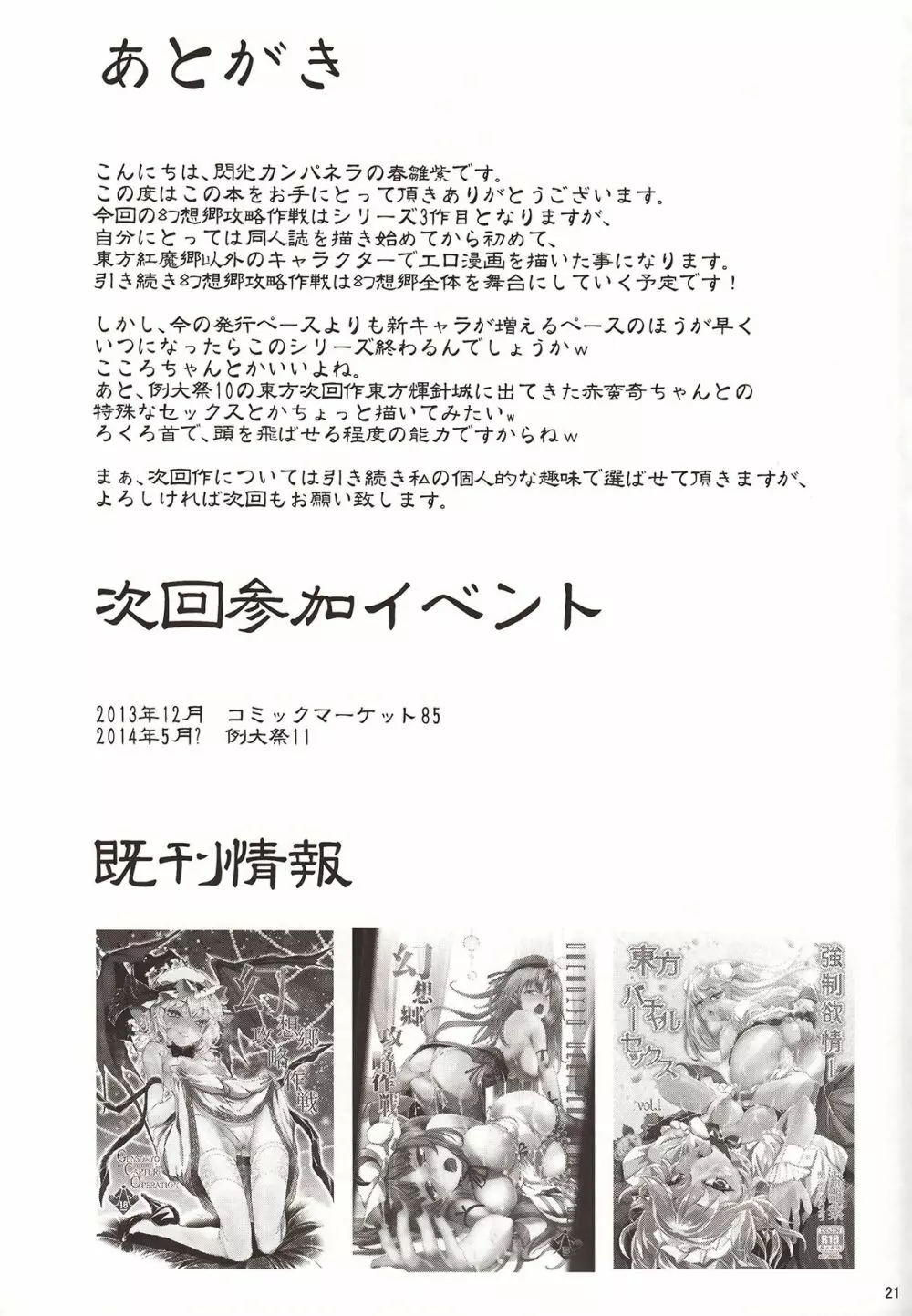 幻想郷攻略作戦 魂魄妖夢編 2025年5月23日 22ページ パロディ東方Projectサークル閃光カンパネラ作者春雛紫内容C84オナニーキャラyoumu konpaku (まだ評価がありません)読み込み中... お気に入り0 みんなの感想 コメントをキャンセル 自分の名前を保存する 関連エロ漫画 浴衣衣玖さんとイチャイチャしたい!! 少女蜜室 ~魔法少女パチュリー~ 復讐?されるチルノ 東方自慰合同本「一人幻想」 今日から俺がうどんげちゃん! 神と古妖 穴があったら出したい やっぱりねこなの。2 妖夢霊湯湛見聞録 もこっちのともだち日記 幻想郷攻略作戦 総集編 妖夢発情期中 CJD幻想郷 本当の気持ち~妖夢days~ UNDER THE HEART プライド弄り ムチムチ幽々子のセックスダンス 魂魄妖夢のエクストリームオナニー あめふらし ウルフプレジャー