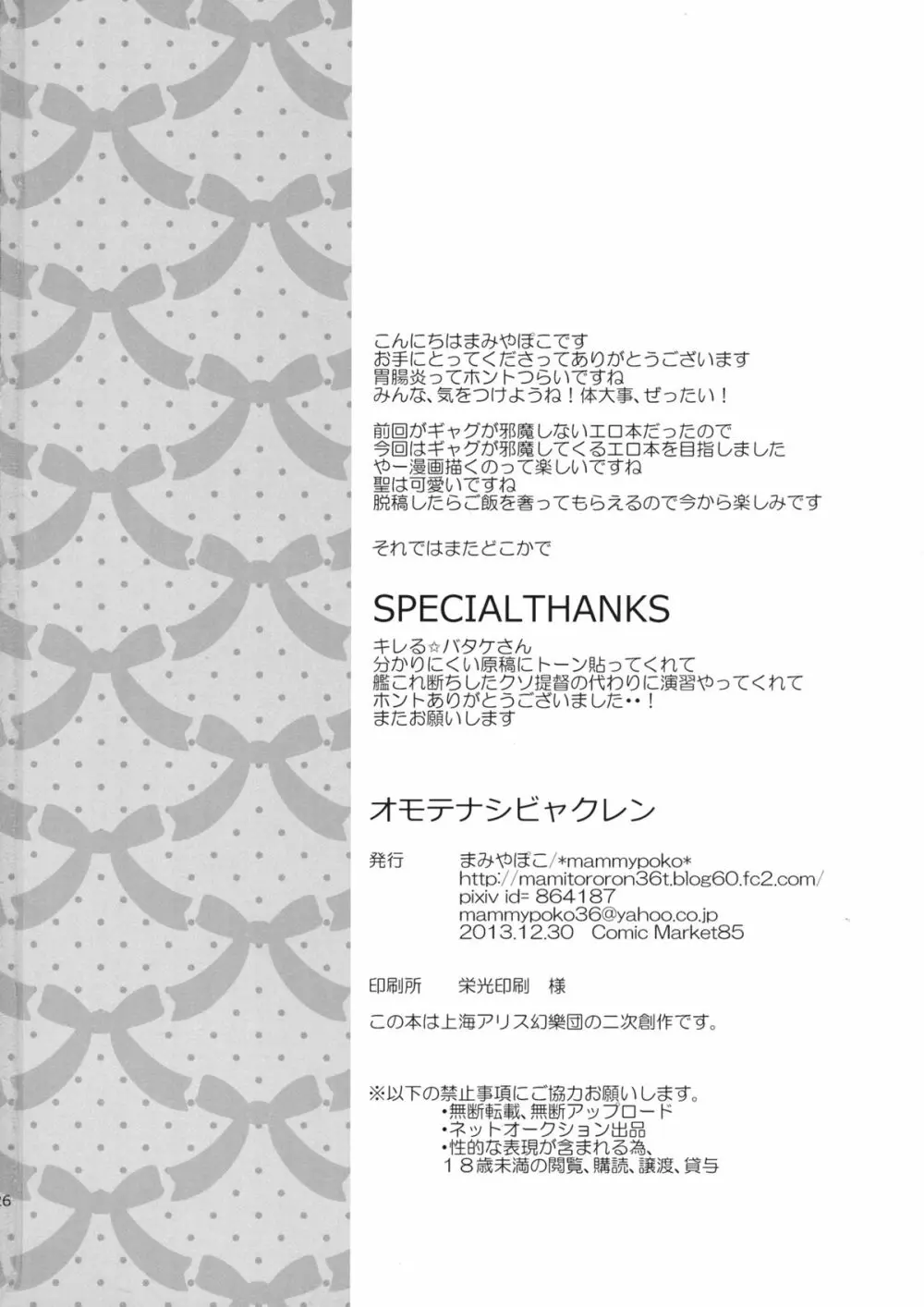 オモテナシビャクレン 2025年5月23日 26ページ パロディ東方Projectサークル*mammypoko*作者まみやぽこ内容C85巨乳キャラ白蓮 聖 (まだ評価がありません)読み込み中... お気に入り0 みんなの感想 コメントをキャンセル 自分の名前を保存する 関連エロ漫画 Kinetoscope Rough Sketch06 やきもちやいてる聖様をいっぱい愛してあげたいんだっ 花水木 修行だよ‼ 聖さん silhouette silhouette HakureiH Flower ~咲華乱~ 東方年増宴・聖 幻想遊郭五大乳 なむパイ 煩悩とってよ聖さん 白蓮スケベしようや! はいとくぼつりん 乳牛尼公飼育日記 Flower ~咲華乱~ やらせて聖様 おねがいナムサン 東方緊縛合同 幻想緊縛少女 ×レティ~レティとショタが真冬の森の中で青姦するお話~ 衣玖睡姦