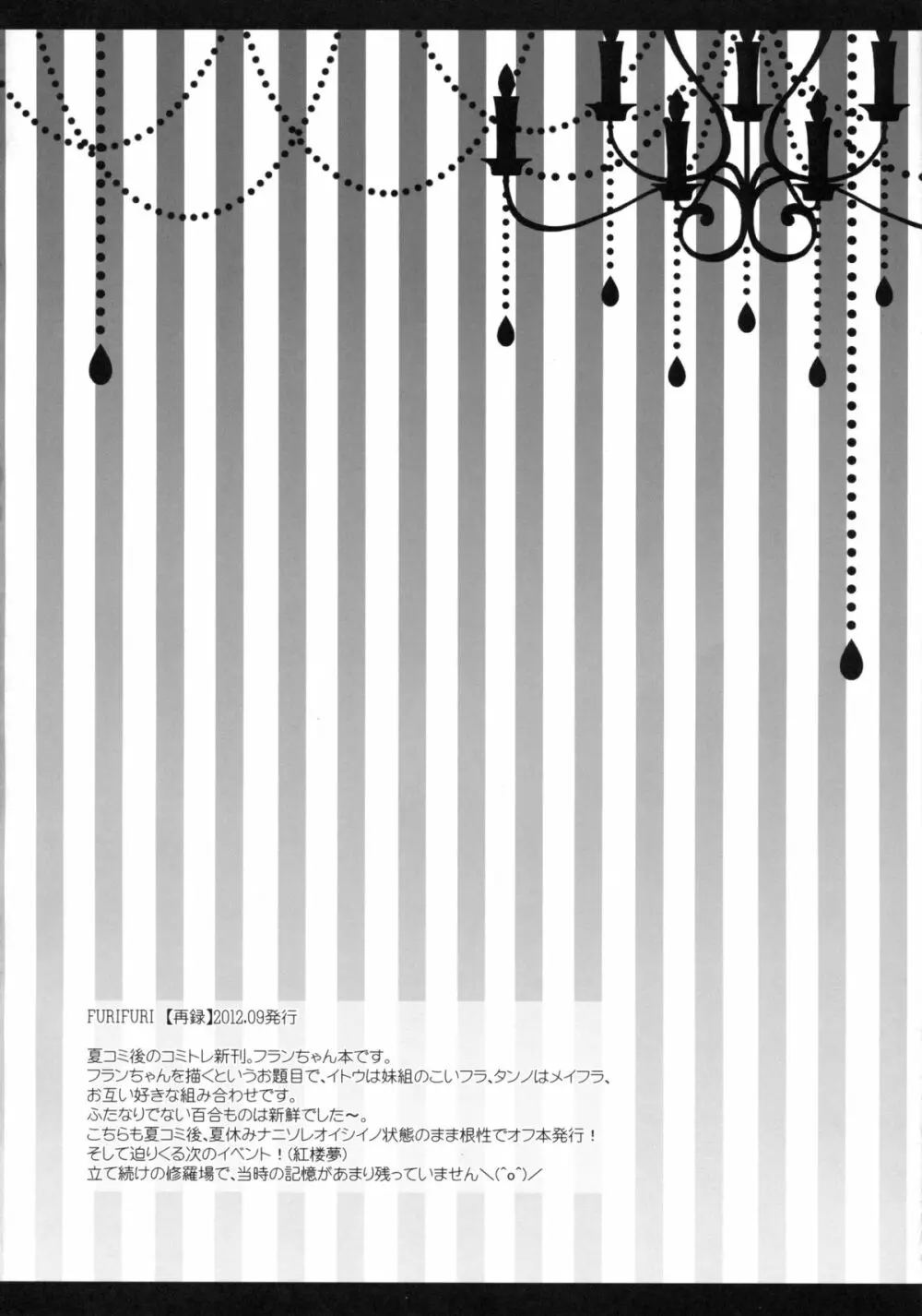 glad glad 2025年5月23日 59ページ パロディ東方Projectサークルせとらん作者イトウせとタンノらん内容C85corsetkimonosex toysstockingswingsyuriアナルふたなりキャラflandre scarlethong meilingkoishi komeijiremilia scarletsakuya izayoi (まだ評価がありません)読み込み中... お気に入り0 みんなの感想 コメントをキャンセル 自分の名前を保存する 関連エロ漫画 おいでませ!!自由風俗幻想郷2泊3日の旅 皐月 PANCHU PANCHU R咲 Adessa Adessa 響く紅 悪魔の犬のしつけかた。 3,4.5,5 イケナイ主従関係 お嬢様達の言う通り フランしたいっ! REC 咲夜欲棒逆転 おまえの正邪!! ある日の妹様×お嬢様 紅魔館シャッフル合同 紅ぱぁ 魔法少女がちんこ勝負 キ印良品ふたなり陵辱本愛憎版[2007年~2009年] 少女双性絵巻 東方踊艶舞 陽の章 紅魔はワタシで廻ってる!? おまん紅魔館 東方自慰合同本「一人幻想」 咲レミのエロ本(タイトル未定)