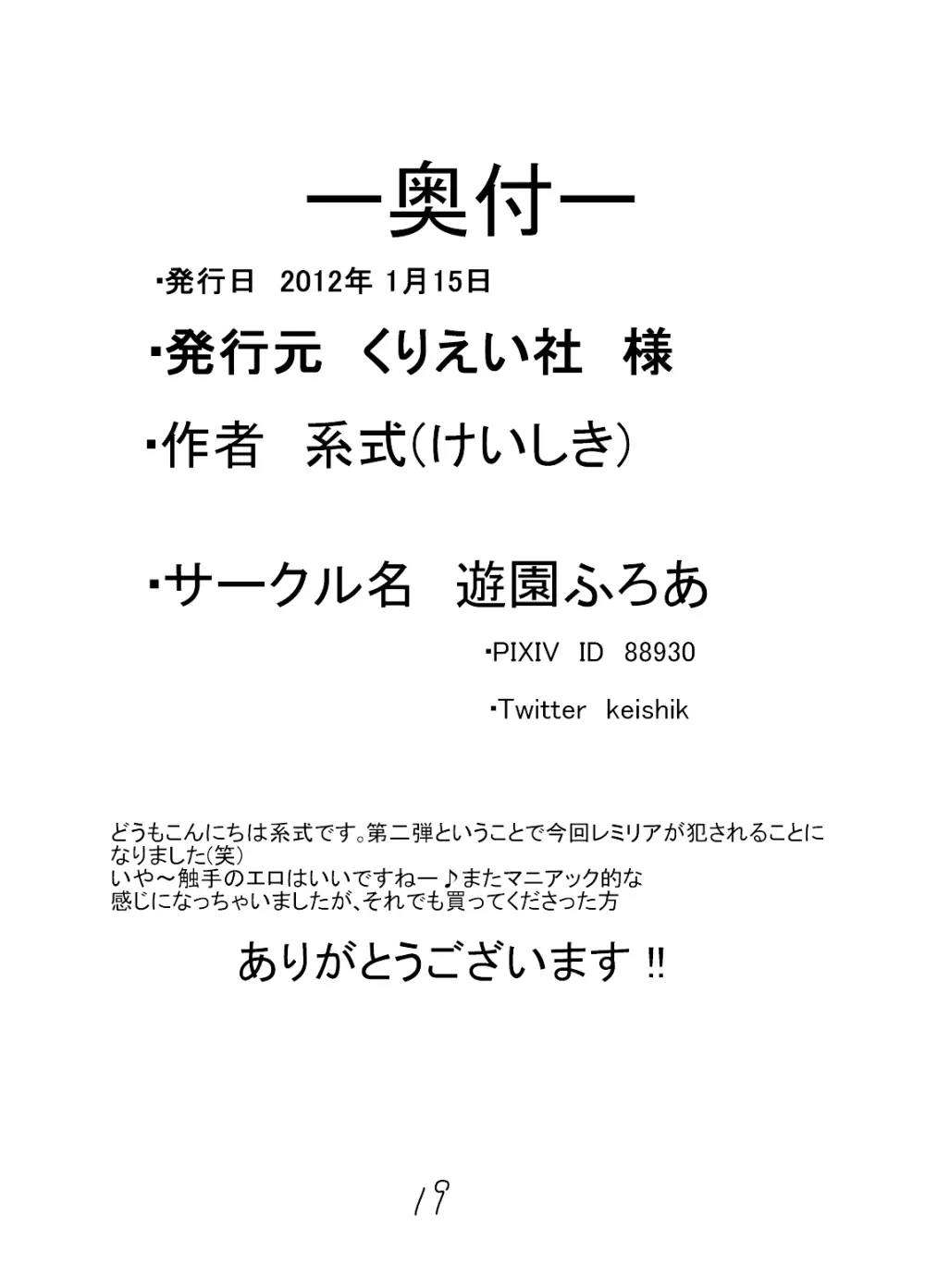 レミリアが触手に犯される 2025年5月22日 20ページ パロディ東方Projectサークル遊園ふろあ作者系式内容bondagelolicontentacleswingsキャラflandre scarletremilia scarlet (まだ評価がありません)読み込み中... お気に入り0 みんなの感想 コメントをキャンセル 自分の名前を保存する 関連エロ漫画 紅×犬 NFRS! 正しい家畜の飼い方 風見幽香の嗜虐哲学 あくまのあそび -あくまのいたずら- 美鈴が堕ちてしまう話F ~フランドールルート~ 東方本物×CJD合同 幻想少女はCJDがお好き2 不健全むちま縛り フランが触手に壊される おちんちん大進撃 レミリアの逆襲 東方自慰合同本「一人幻想」 東方レースクイーンズ合同 -SCARLET SISTERS- レミフラの精液大好き祭 Scarlet Anal Midnight Scarlet 忌避断罪+PARANOIA+虎の威を借りて恋 セット おとなのあそび レミフラのエッチな性玩具 君は餌序 LoliCo 01