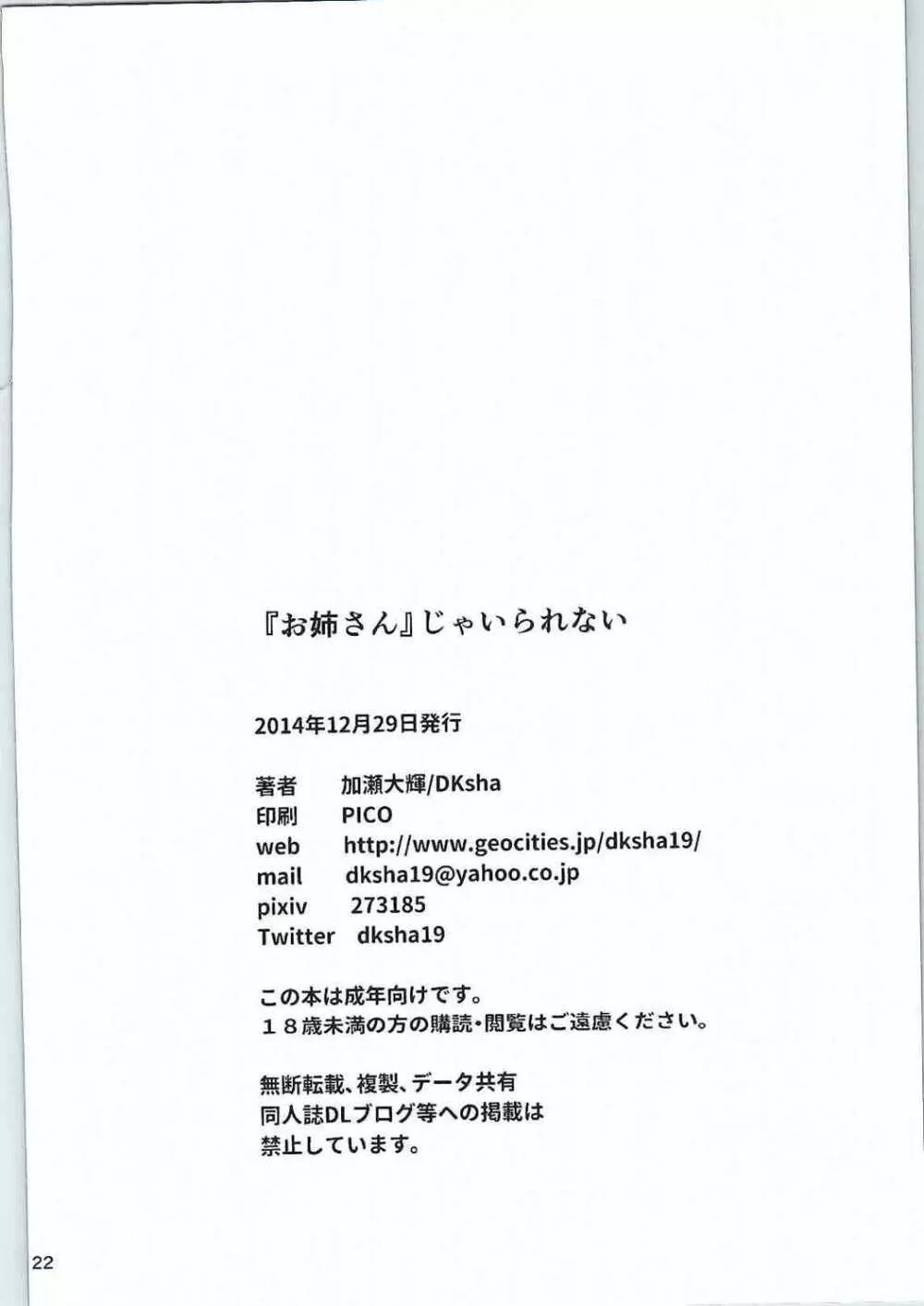 『お姉さん』じゃいられない 2025年5月22日 22ページ (まだ評価がありません)読み込み中... お気に入り0 みんなの感想 コメントをキャンセル 自分の名前を保存する 関連エロ漫画 『お姉さん』じゃいられない 隣のおちんぽ♂お姉さん -後編- ショタ×お姉さん 【フルカラー版】お姉さん、あなたが助けたのは本当にシ○タですか? お隣の優しい?お姉さん 隣のおちんぽ♂お姉さん -後編- 夏色全裸露出キマシ ~お姉さん、裸女でしょ!~ 即抜き!!お姉さん 邪☆お姉さん~終わりの始まり~ 隣のおちんぽ♂お姉さん♥ 前編 邪☆お姉さん~東風谷早苗事変~