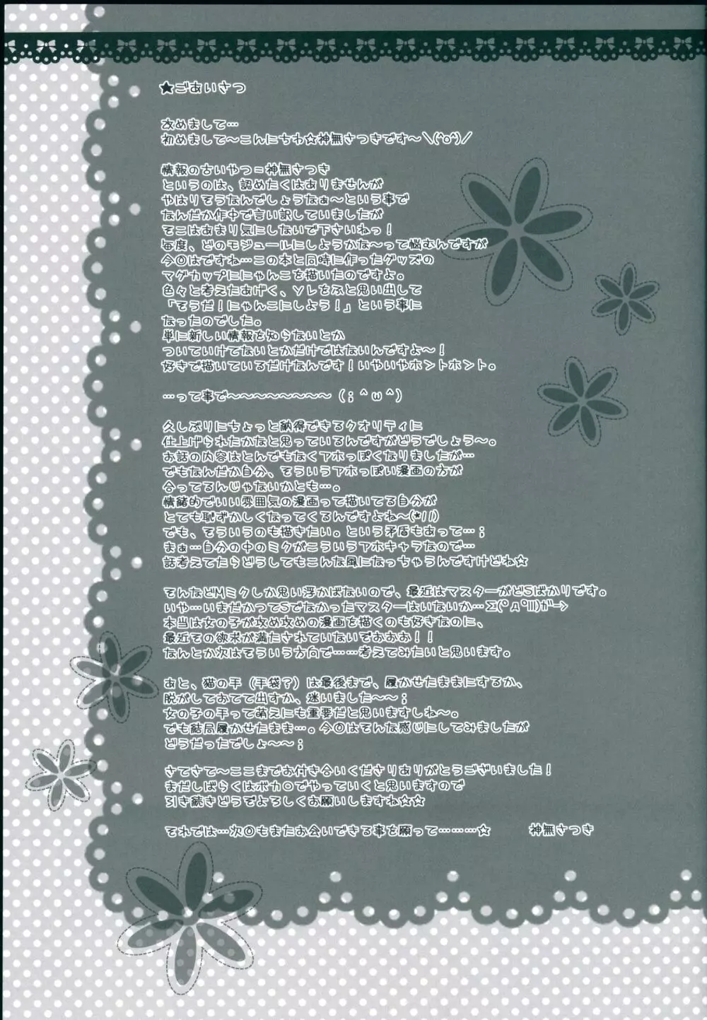 Utahime*Nyanko~うたひめにゃんこ~ 2025年5月22日 26ページ パロディボーカロイドサークルみゆみゆProject作者神無さつき内容COMIC1☆6ストッキング猫娘キャラ初音 ミク (まだ評価がありません)読み込み中... お気に入り0 みんなの感想 コメントをキャンセル 自分の名前を保存する 関連エロ漫画 Chou Ryoujoku Utahime NYANKO OF BRAVES GAOGAINYA