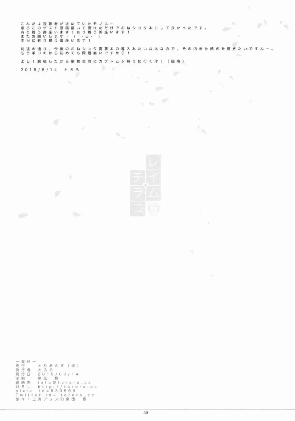 レイム×テラコ 2025年5月22日 30ページ パロディ東方Projectサークルtoriaezu kari作者tororo内容loliconmikoshotaconキャラreimu hakurei (まだ評価がありません)読み込み中... お気に入り0 みんなの感想 コメントをキャンセル 自分の名前を保存する 関連エロ漫画 幻想郷フタナリチンポレスリング合同誌 GFCW Extreme 結界少女 囚われの巫女 霊夢さんとマフラーの効力 東方断魂呪 蛍の光は常闇に消ゆ 霊夢さんおっぱいください 加賀さんの事務ヌキ生活+伊東ライフ総集編 2013~2015 少名の中に男がひとり ANMITSU TOUHOU HISTORY Vol.3 妄想少女 ミコチンちゅうどく ぎゅっとショタ霖 レイジー・バタフライ 日焼けした霊夢さんと素直にセックスしたい TOUHOU 東方陵辱54 霊夢 謹製 紅白まんじゅう 夏夏ナツナツGoGo夏ックス 生贄の巫女