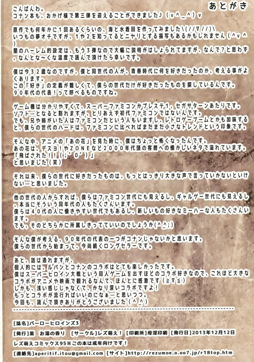 バーローヒロインズ3 海と水着と愛の事件 2025年5月22日 17ページ パロディ名探偵コナンサークルレズ萌え!作者お湯の香り内容hairyフルカラーロリコンキャラ毛利 蘭灰原 哀 (まだ評価がありません)読み込み中... お気に入り0 みんなの感想 コメントをキャンセル 自分の名前を保存する 関連エロ漫画 関連記事が見つかりませんでした。