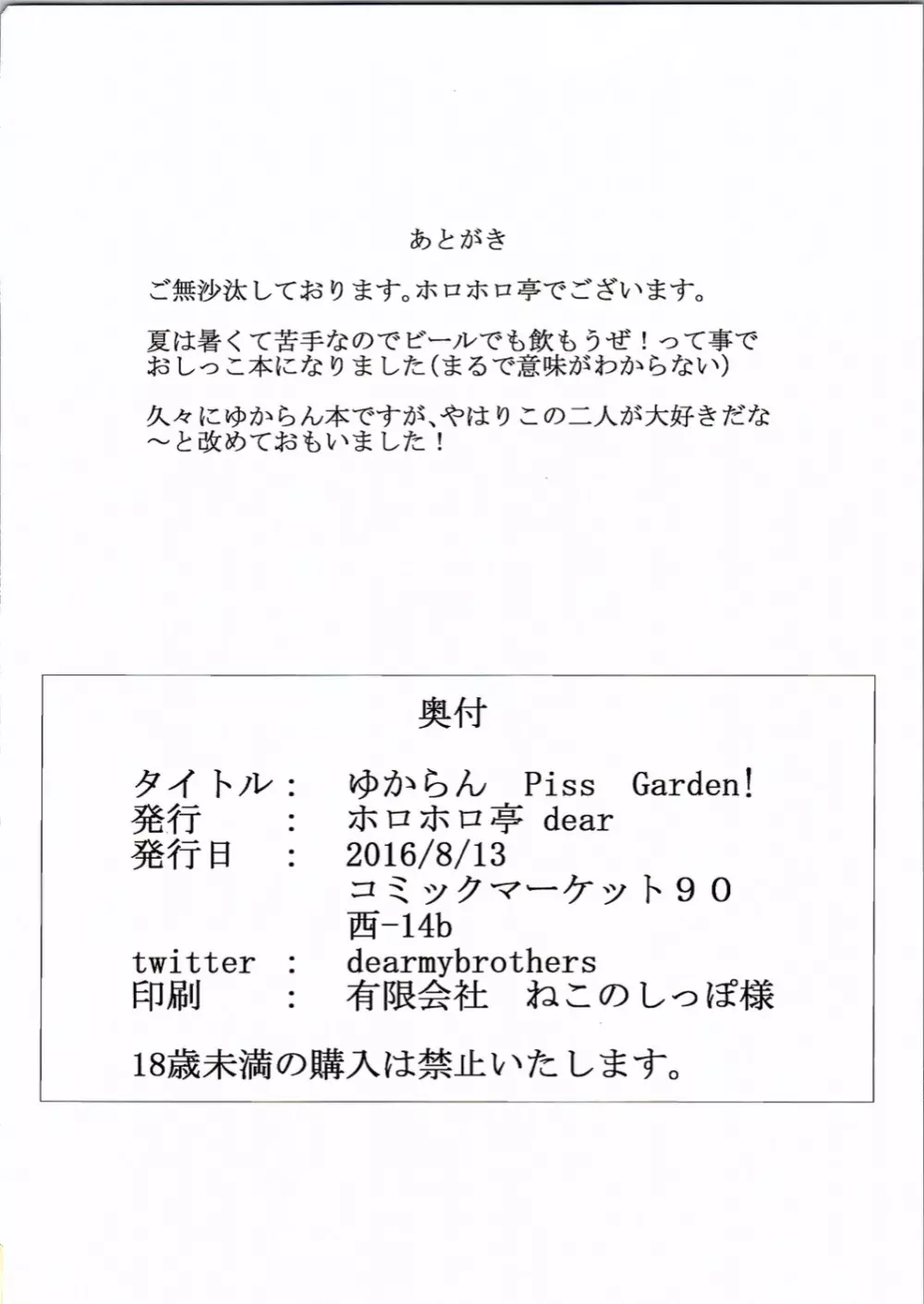 ゆからんPiss Garden! 2025年5月21日 24ページ パロディ東方Projectサークルホロホロ亭作者dear内容C90おもちゃキツネ少女バニーガールレオタード女性のみ女性同士巨乳排尿放尿百合キャラ八雲 紫八雲 藍 (まだ評価がありません)読み込み中... お気に入り0 みんなの感想 コメントをキャンセル 自分の名前を保存する 関連エロ漫画 Queen’s garden boys in secret garden Secret Garden VII Secret Garden XI Garden Pink Secret Garden+ snow*garden Star Garden 3 Secret Garden IV Plum Garden Flower ULTIMATE GARDEN DAYDREAM GARDEN グランサイファーSecret Garden FOOL’S GARDEN Honey Of miniature Garden~箱庭の蜜~ ANGELIQUE GARDEN Secret Garden+III ROSE GARDEN Miniature garden The Secret Garden
