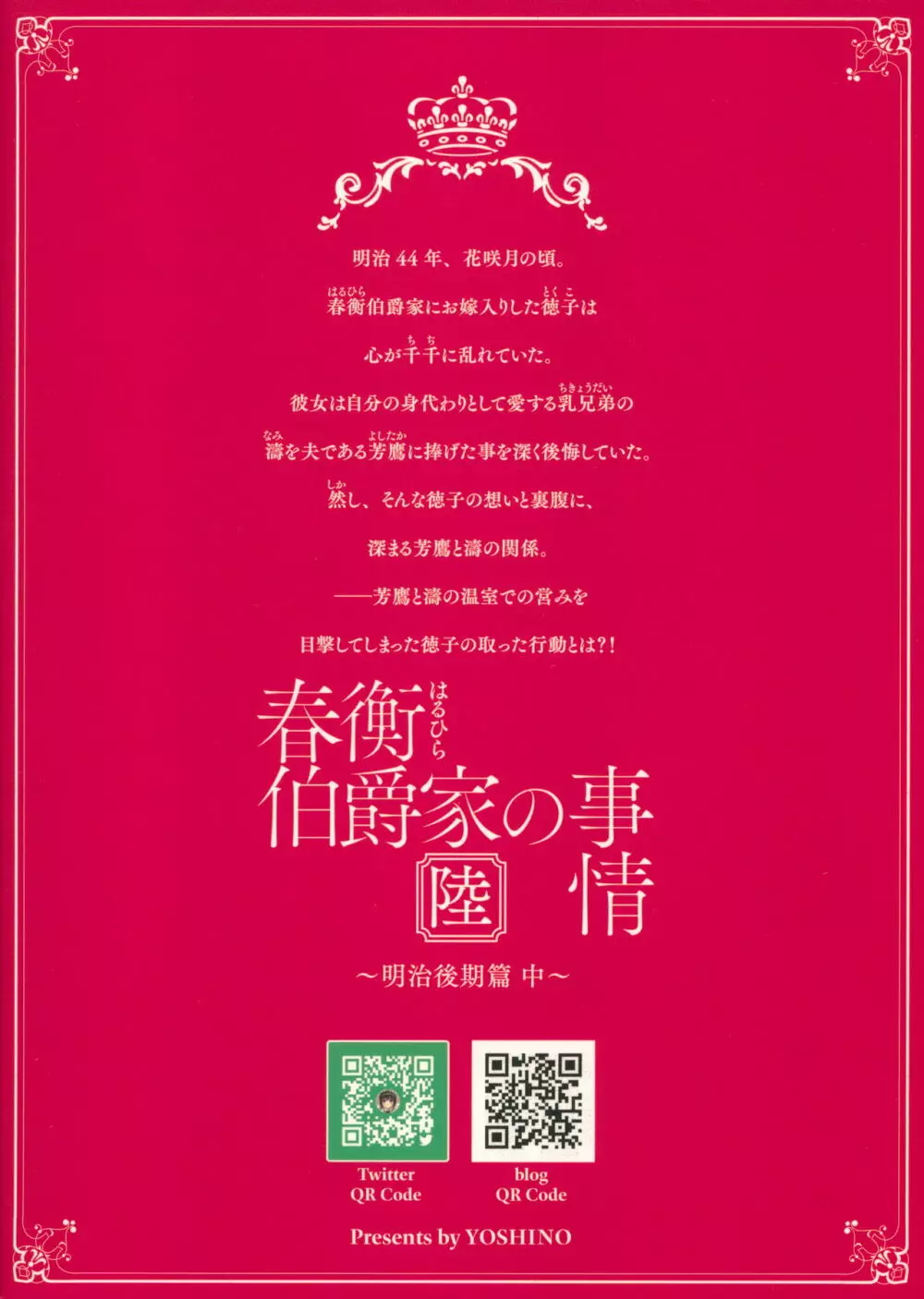 春衡伯爵家の事情 陸 ~明治後期篇 中~ 2025年5月27日 35ページ パロディオリジナルサークル-A吉野作者菊月太朗内容COMIC1☆13full censorshipオナニーメイド着物 (まだ評価がありません)読み込み中... お気に入り0 みんなの感想 コメントをキャンセル 自分の名前を保存する
