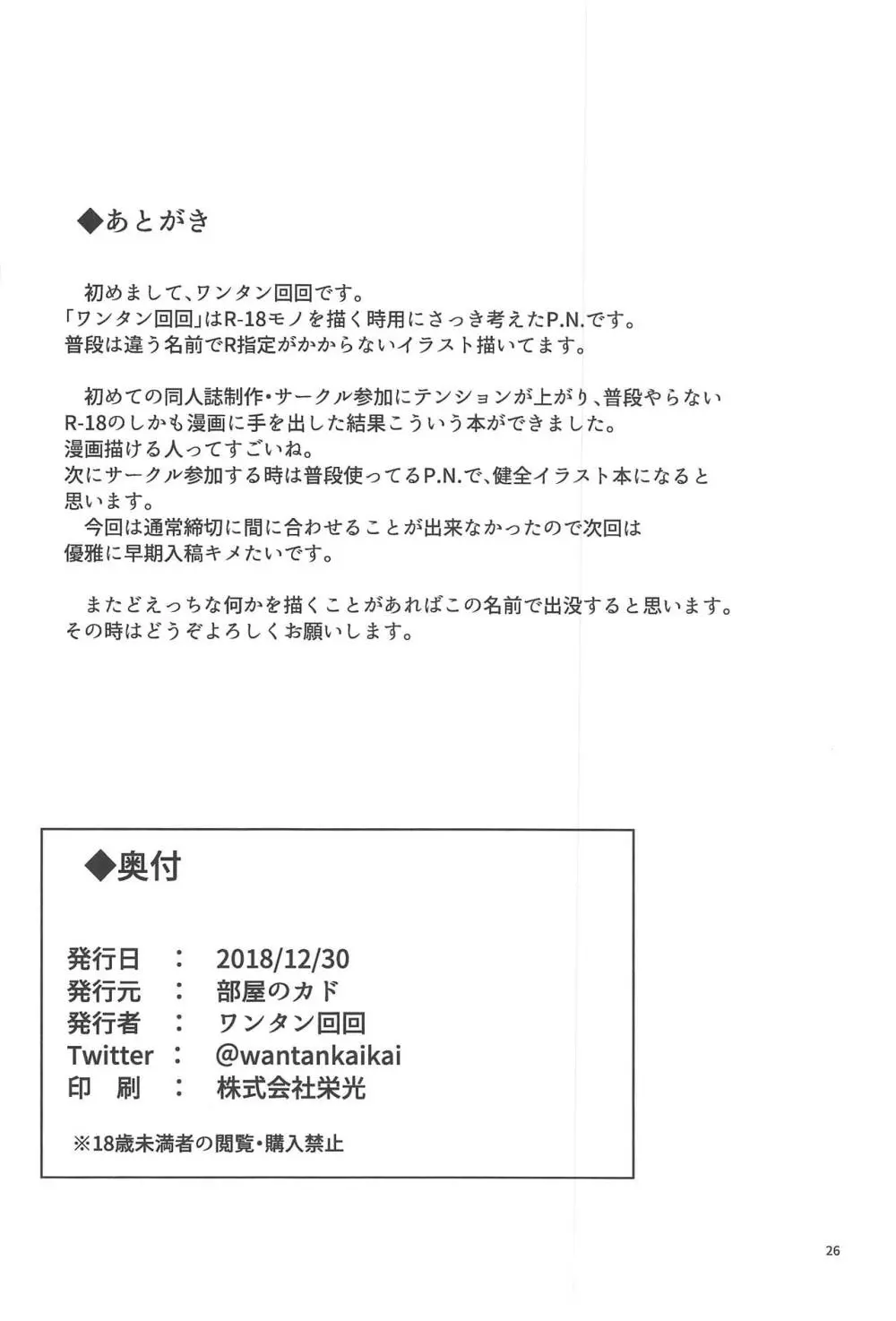 カルデアでお留守番しているクロエが魔力供給する本 2025年5月27日 26ページ パロディFate/Grand Orderサークル部屋のカド作者ワンタン回回内容C95dark skinloliconnakadashisole femaleキャラkuro von einzbern (まだ評価がありません)読み込み中... お気に入り0 みんなの感想 コメントをキャンセル 自分の名前を保存する 関連エロ漫画 蝶よ華よ OrangeMaru Special 07 HOBBY’S BLOCK!!28 生意気メスガキクロエちゃんをガンギメアヘ落ちさせる本 目つきちゃん えっちなダ・ヴィンチちゃん 負けない!シトナイちゃんを分からせる! XXを催眠でアヘらせる本 魔法少女催眠パコパコーズ2 続・エロサムライ純情派 TESTAMENT! DOLL PET ~的場梨沙のお仕事HEAVEN!~ OrangeMaru Special 07 ロリエンジェルパティマ1 マスターなら、よくってよ 褐色メスガキなんかに絶対負けないッ! 鬼毒の酒気 アナアカ2 イブキちゃんがいけないんだよ 沖田さんとあたため合いましょう D.L. action 125 アビゲイルH学習生活