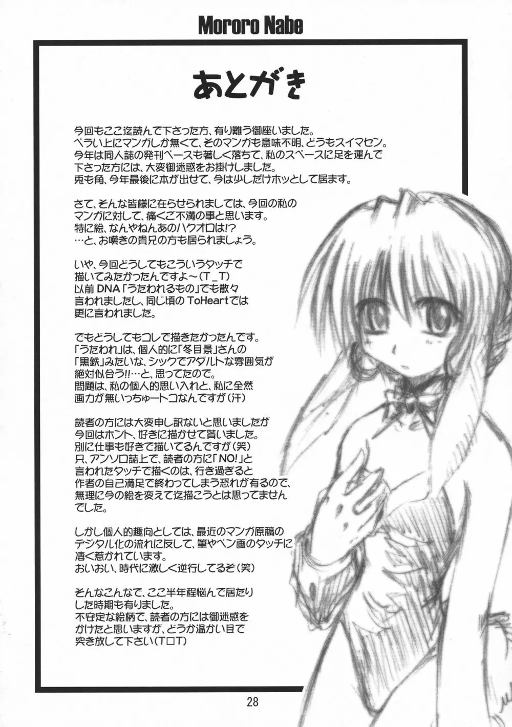 モロロ鍋 2025年5月27日 30ページ パロディうたわれるものサークル鬼鬼きび党作者ぴすとん内容C63sole maleロリコンキャラaruruハクオロ (まだ評価がありません)読み込み中... お気に入り0 みんなの感想 コメントをキャンセル 自分の名前を保存する