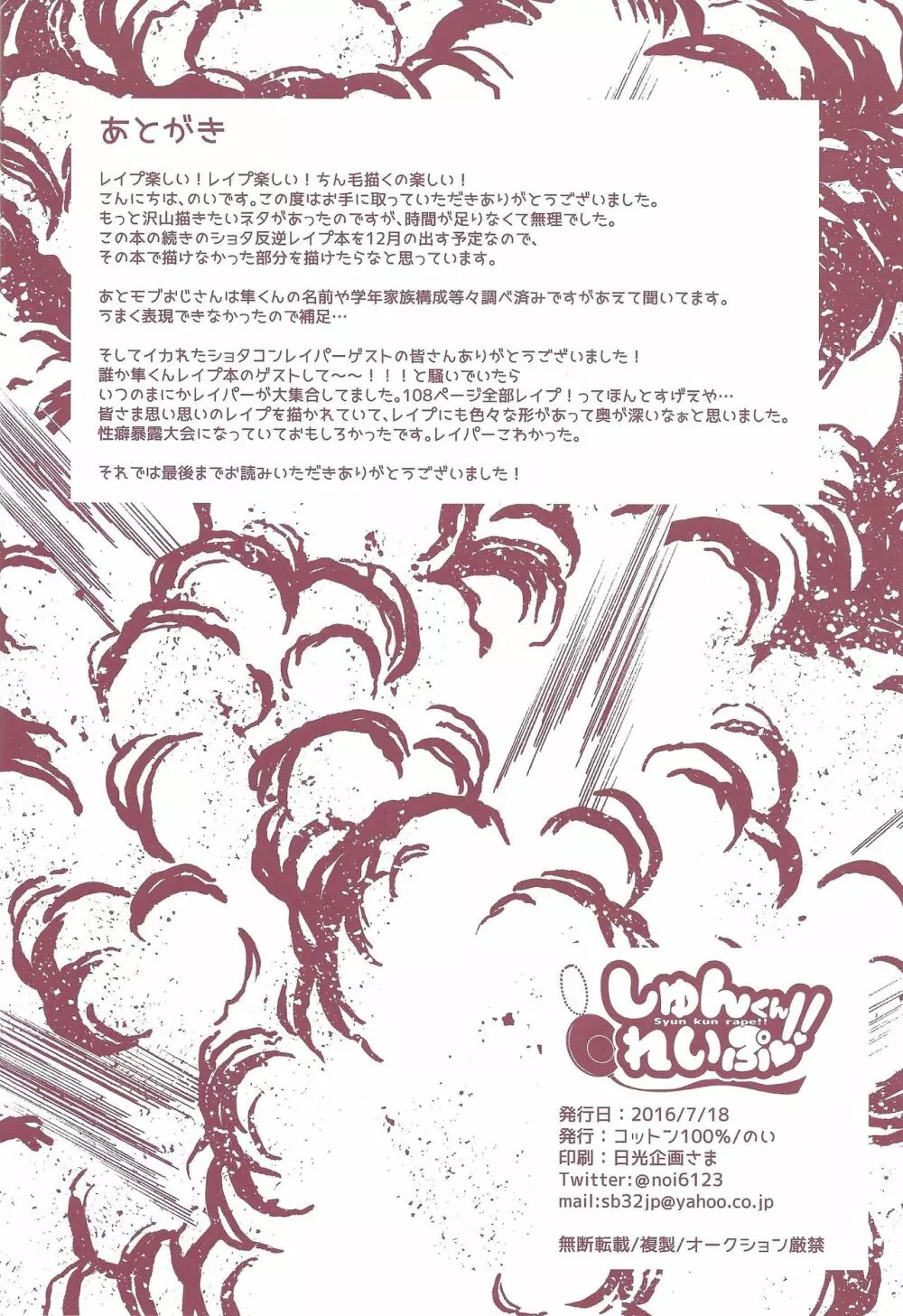 しゅんくんれいぷ!! 2025年5月27日 106ページ パロディ遊☆戯☆王ARC-Vサークルコットン100%作者のい内容BLアナルおもちゃショタスクール水着フェラチオレイプ中出し千年☆バトル フェイズ16女装男の娘禿頭脅迫薬物キャラユート黒咲 隼 (まだ評価がありません)読み込み中... お気に入り0 みんなの感想 コメントをキャンセル 自分の名前を保存する 関連エロ漫画 関連記事が見つかりませんでした。