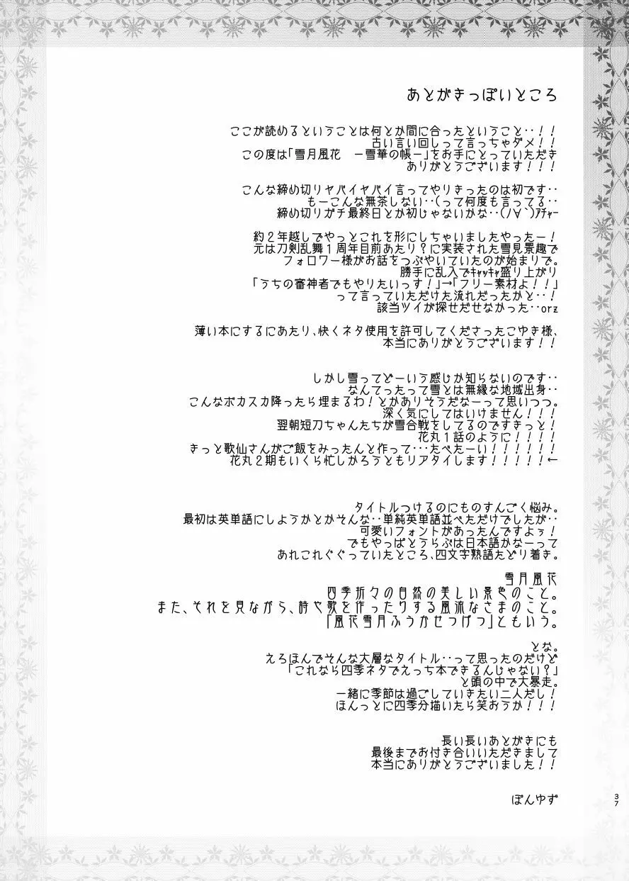 雪月風花 -雪華の帳- 2025年5月27日 38ページ パロディ刀剣乱舞サークルふにゅはにょうにゃらん作者ぽんゆず (まだ評価がありません)読み込み中... お気に入り0 みんなの感想 コメントをキャンセル 自分の名前を保存する 関連エロ漫画 【Web再録】薬さに ねがいごと、ひとつだけ すなおになろうね 深夜0時寝室にて 我慢できない謙信くん ごこちゃんの夢 その目で見つめて 【Web再録】みかさに Amaurophilia 抜いてみせまショウ ちゃんとわかってる小夜ちゃん 硝子細工の色の無い花 兄弟を守りたい平野くん うつつのゆめ こいうつつ 好奇心旺盛な秋田くん ひとつだけ我儘を言わせて 膝髭♀女体化 雪月風花 -暑気払いの夜- 椿抄 四 弄月 -ろうげつ-