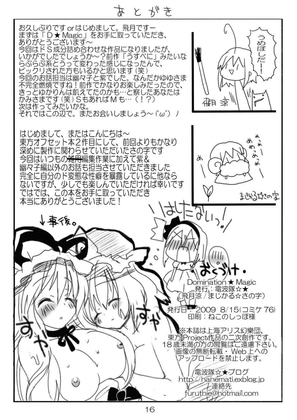 Domination★Magic 2025年5月27日 17ページ パロディ東方Projectサークル電波隊☆★作者まじかる☆さの字, 飛月涼内容C76ストッキングパンスト授乳足コキキャラアリス・マーガトロイド八雲 紫博麗霊夢東風谷 早苗水橋パルスィ火焔猫 燐西行寺 幽々子風見 幽香 (まだ評価がありません)読み込み中... お気に入り0 みんなの感想 コメントをキャンセル 自分の名前を保存する