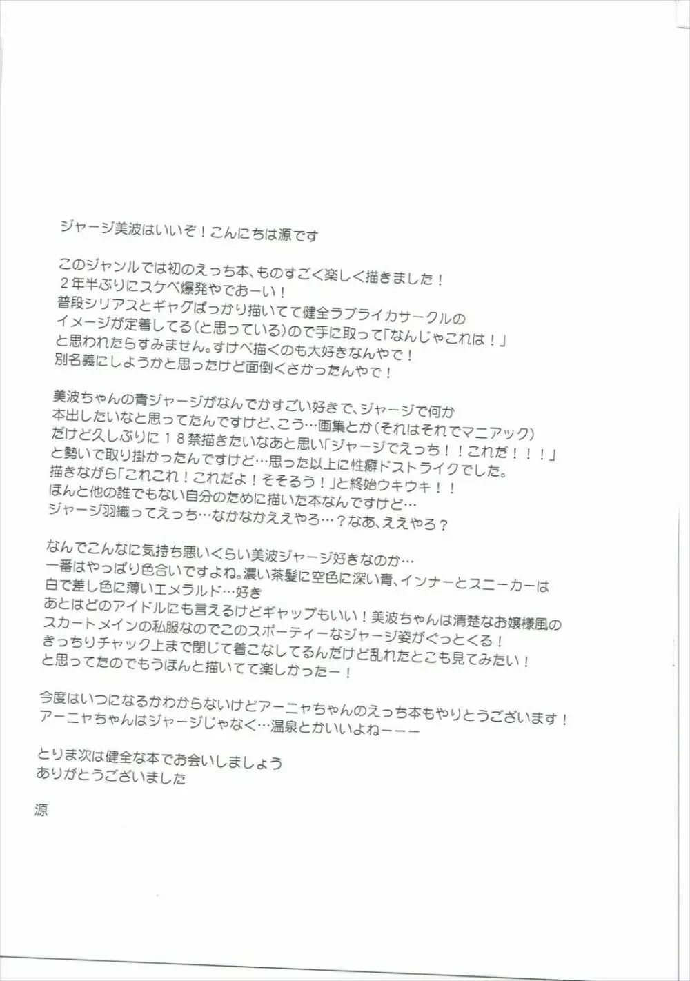 ジャージ美波と×××する本 2025年5月28日 26ページ パロディアイドルマスター シンデレラガールズサークル炎爾作者ae源内容sole femalesole maleジャージ・スウェット歌姫庭園12キャラ新田 美波 (まだ評価がありません)読み込み中... お気に入り0 みんなの感想 コメントをキャンセル 自分の名前を保存する