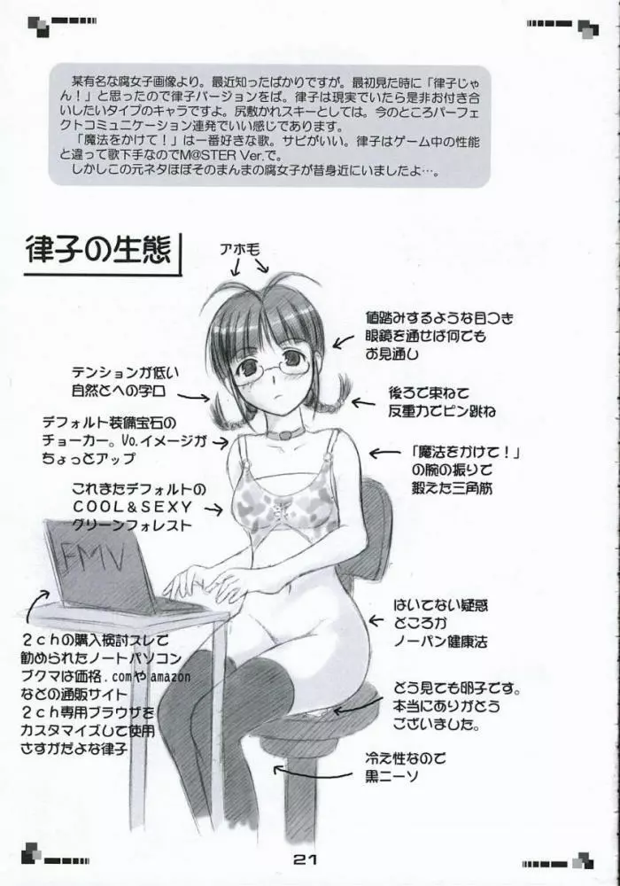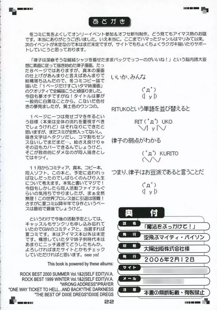 魔法をぶっかけて! 2025年5月27日 22ページ パロディアイドルマスターサークル空飛空飛ぶマイティ・パイソン内容アイドルマニアックス眼鏡キャラ三浦 あずさ秋月 律子 (まだ評価がありません)読み込み中... お気に入り0 みんなの感想 コメントをキャンセル 自分の名前を保存する