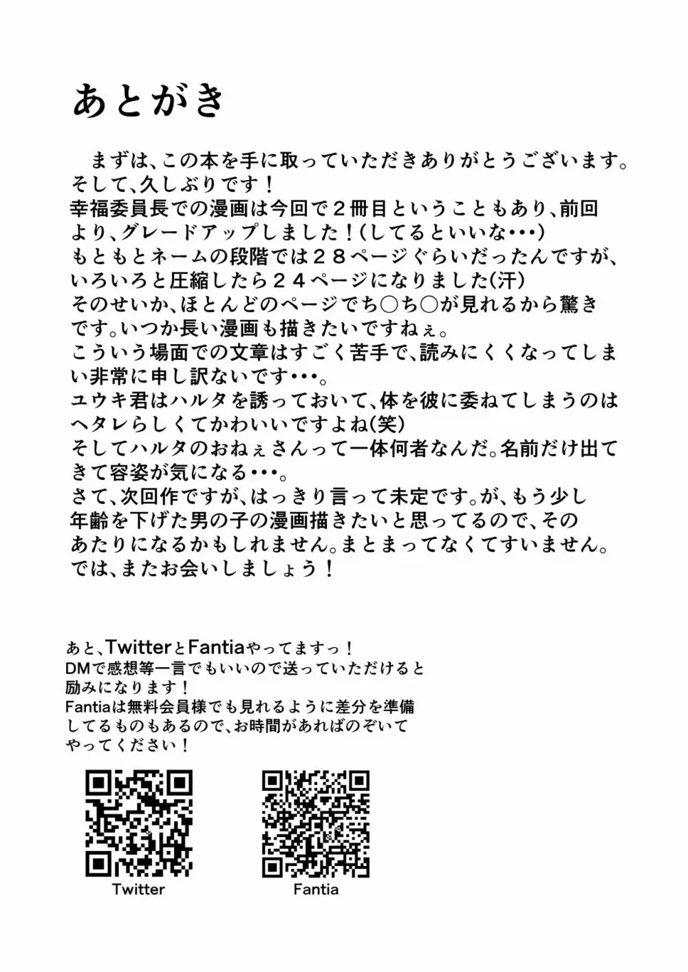 思いきって! 2025年5月26日 24ページ パロディオリジナルサークル幸福委員長作者ハッピー内容BLアナルショタ (まだ評価がありません)読み込み中... お気に入り0 みんなの感想 コメントをキャンセル 自分の名前を保存する