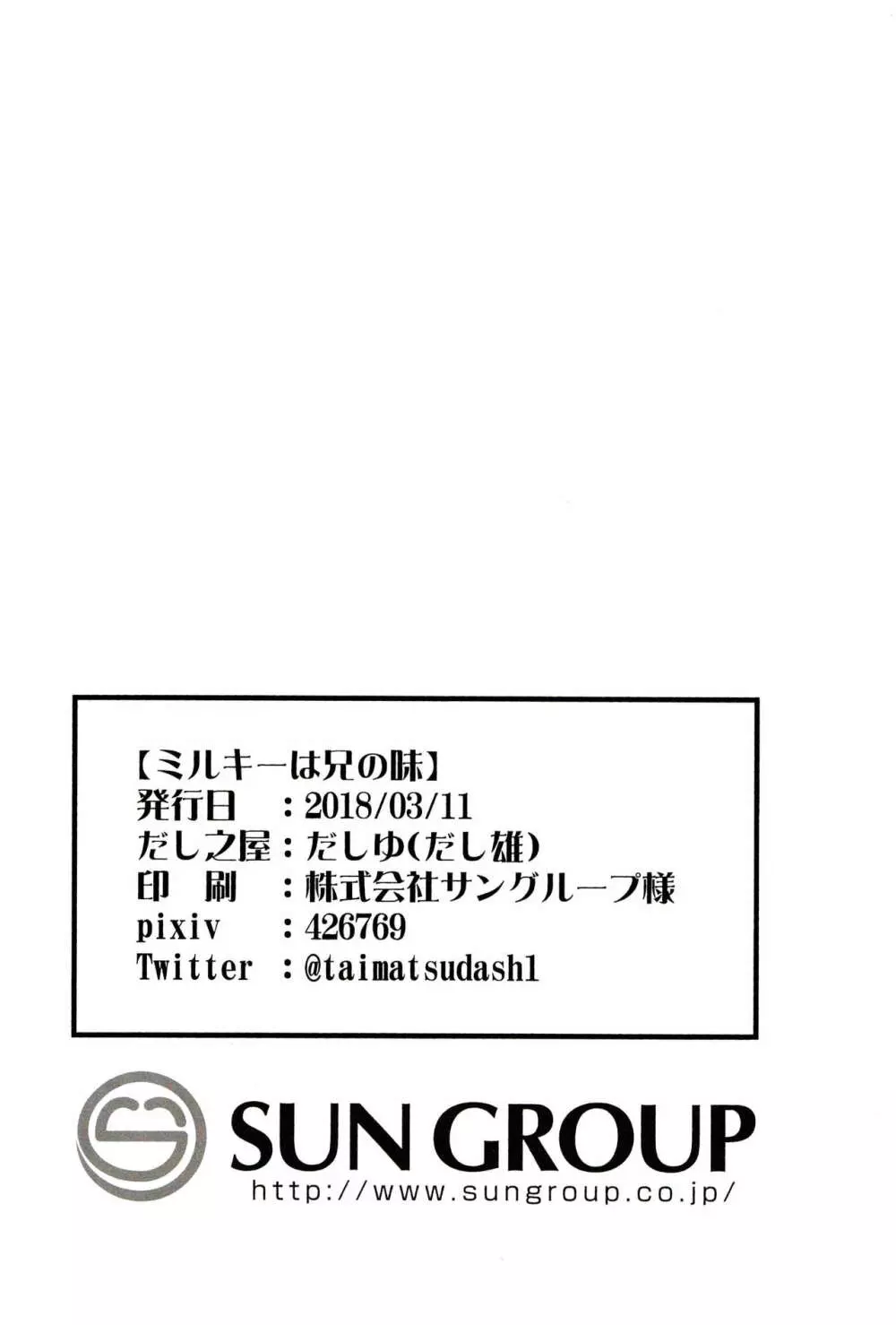 ミルキ~は兄の味♪ 2025年5月26日 15ページ パロディおそ松さんサークルだし之屋作者だしゆ内容bbmbrothercowmankemonomimimales onlyyaoiふたりの恋+シーズン3人間の牛授乳近親相姦キャラ松野 一松松野十四松 (まだ評価がありません)読み込み中... お気に入り0 みんなの感想 コメントをキャンセル 自分の名前を保存する