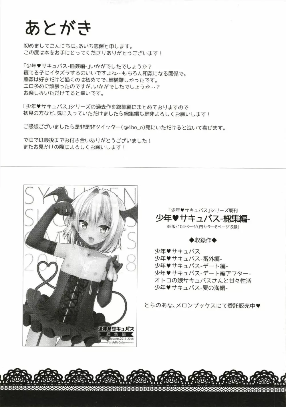 少年サキュバス -睡姦編- 2025年5月26日 28ページ パロディオリジナルサークルアールカフィ作者あいち志保内容BLmulti-work seriesアナル女装悪魔男の娘男性専用睡眠姦 (まだ評価がありません)読み込み中... お気に入り0 みんなの感想 コメントをキャンセル 自分の名前を保存する 関連エロ漫画 のぞき穴、届かない聲 人妻♂盗撮寝取り2 男の子は前立腺で花開く [CHINZURI BOP (チンズリーナ)] 女装(メス)ホモ彼女 [DL版] 女装少年ねこちにガチ恋× サキュバスくんとのせいかつ1 パパ活男子陽子ちゃんとお散歩デート 万引き女装少年メス堕ち覗かれファック 売れないエロゲライターが女装して女の子の気持ちを勉強してみた3 サキュバスくんとのせいかつ4 転生したらエリート淫魔でした デリバリーセラフ オトコノコ女性化研究録 其ノ二 ぺっとらいふ~みうのおつかい~ 再会した幼馴染に雌の悦びを教えられた俺。2 パパのオナホになれ2 ママに秘密の海外旅行 弓道男子3 ヘンタイ調教 部活の先輩達に夜の公園で野外露出調教されました インキュバス君♂サキュバス堕ち♀!? 君はかわいい僕だけのアイドル オトコの娘サキュバスさんと甘々性活