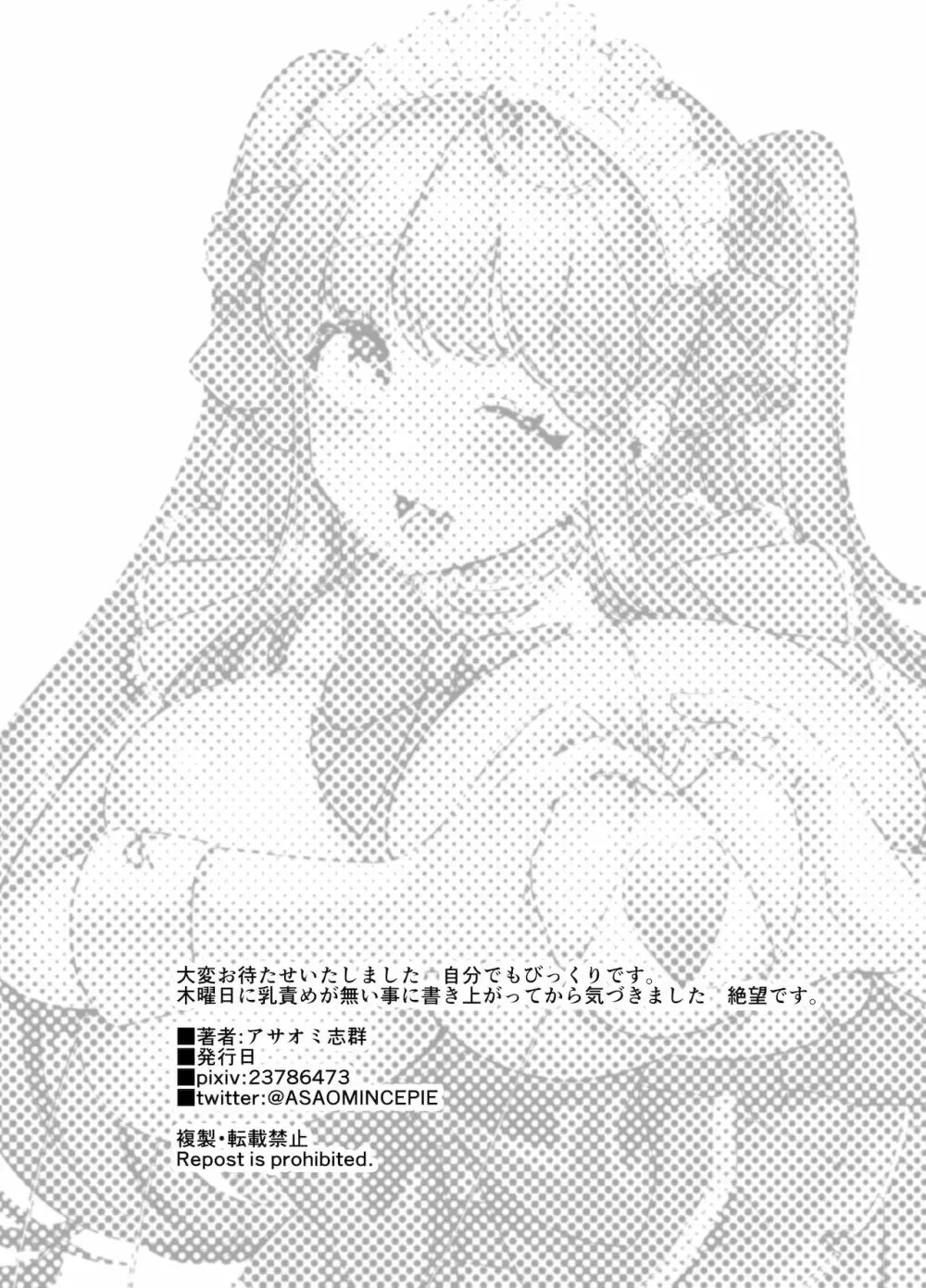 メイドカフェちちゆら チェキ1枚1500円 1まいめ 2025年5月26日 32ページ パロディオリジナルサークル後後ろの志群作者アサオミ志群内容ツインテールバニーガール巨乳授乳消し・ぼかし・モザイク処理 (まだ評価がありません)読み込み中... お気に入り0 みんなの感想 コメントをキャンセル 自分の名前を保存する